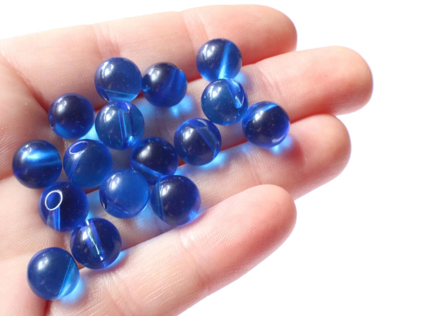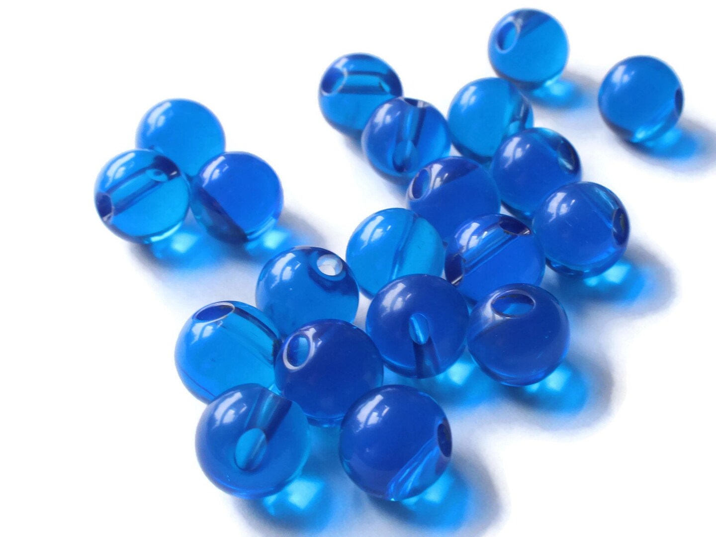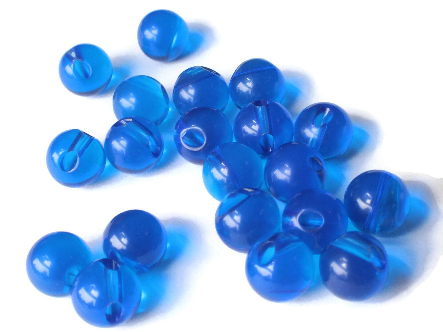 12 9mm 3/8 Inch Clear Blue Ball Buttons Round Vintage Lucite Buttons