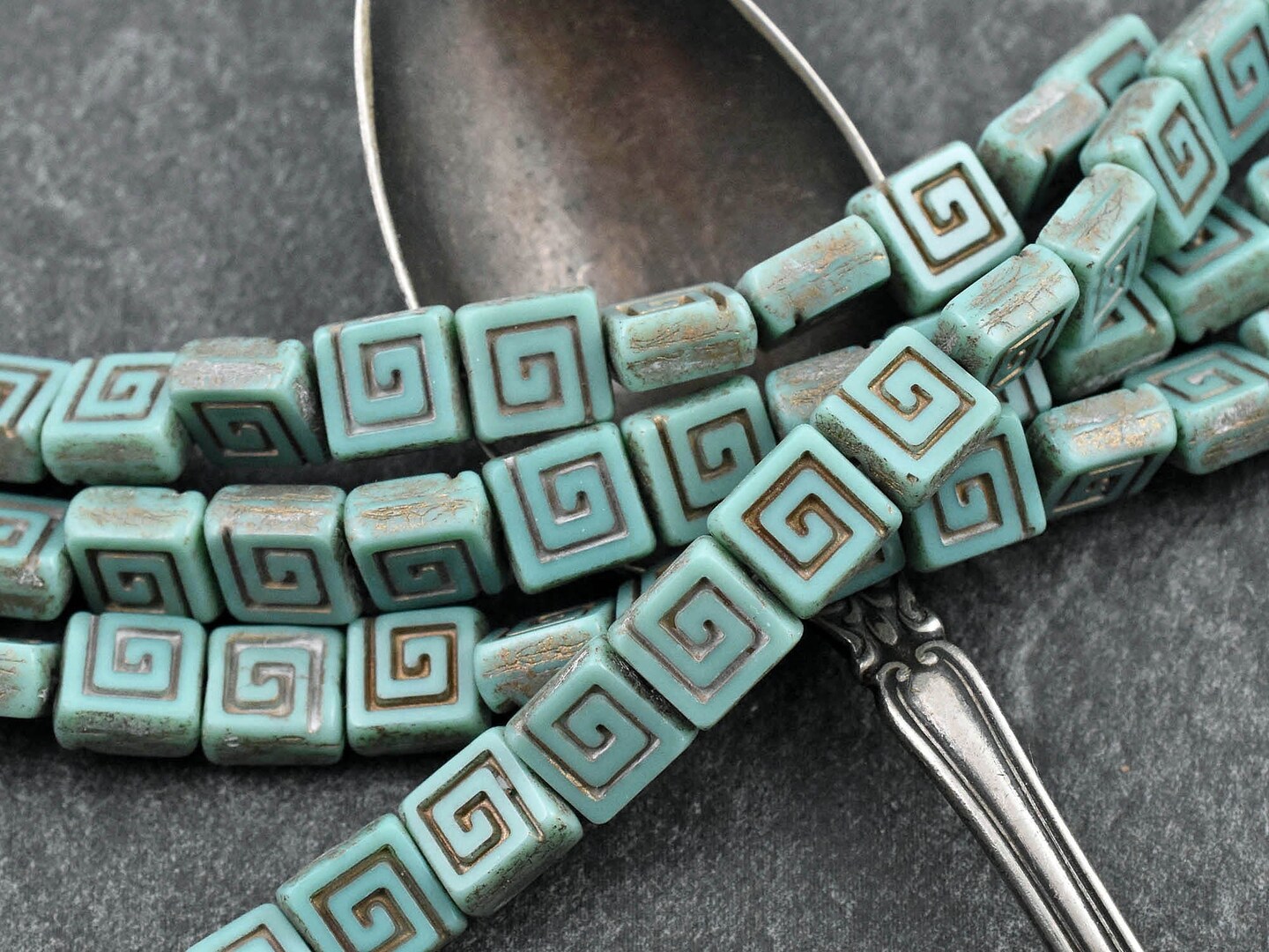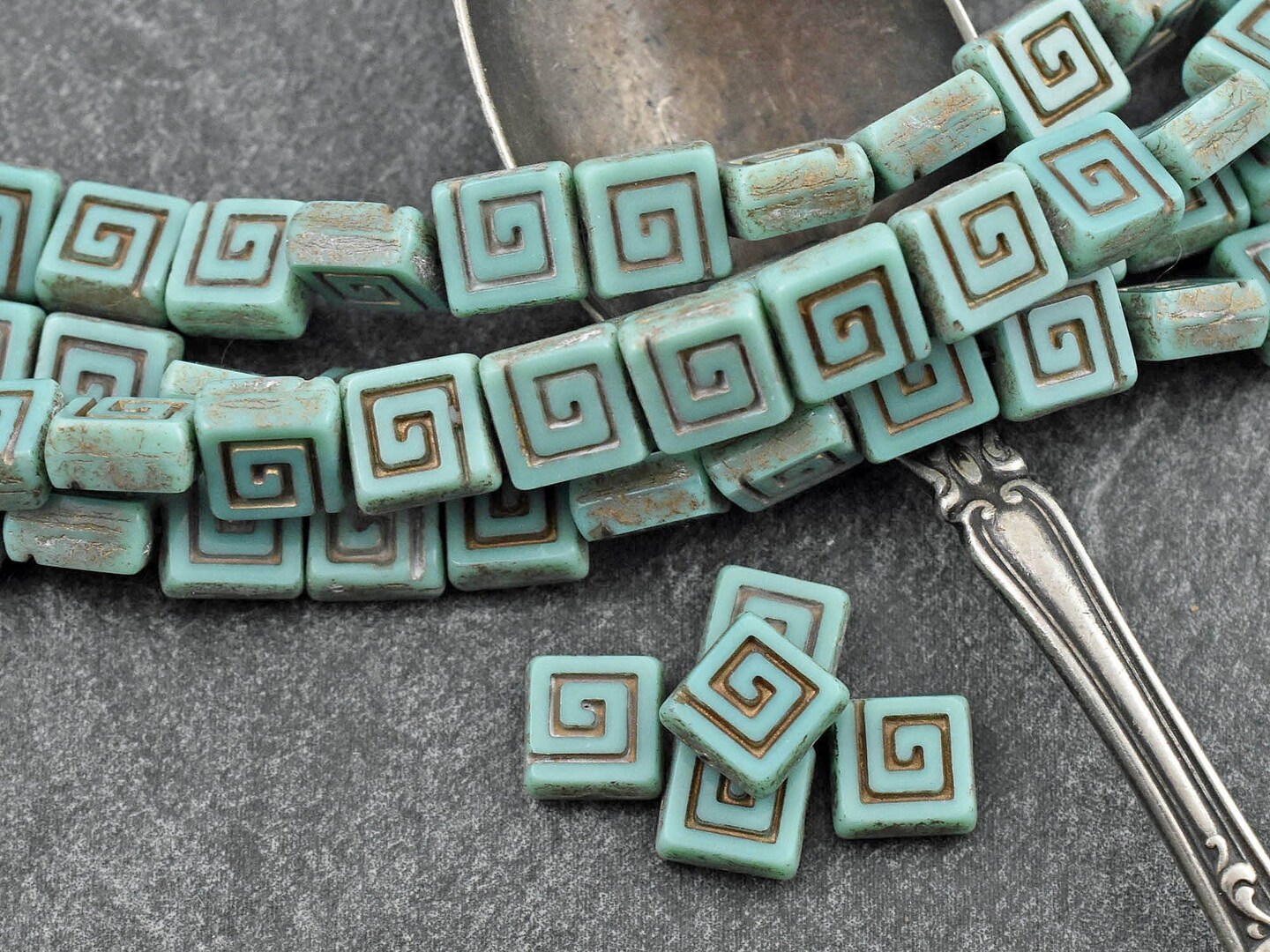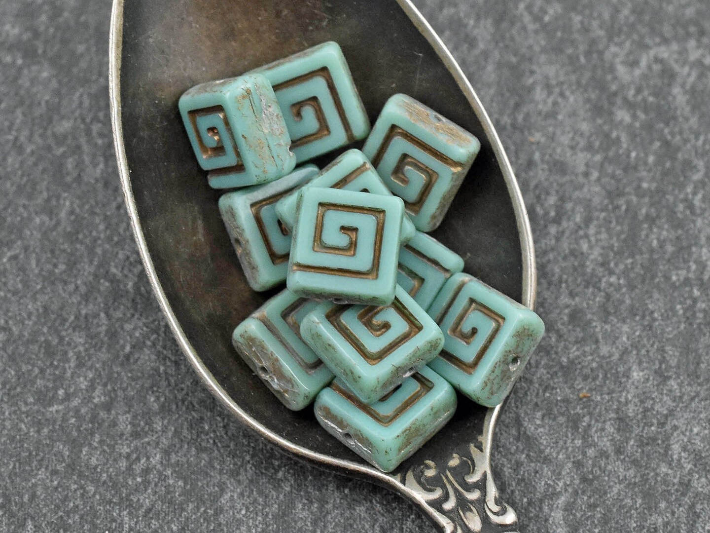 *12* 9mm Gold Washed Opaque Turquoise Table Cut Celtic Square Beads