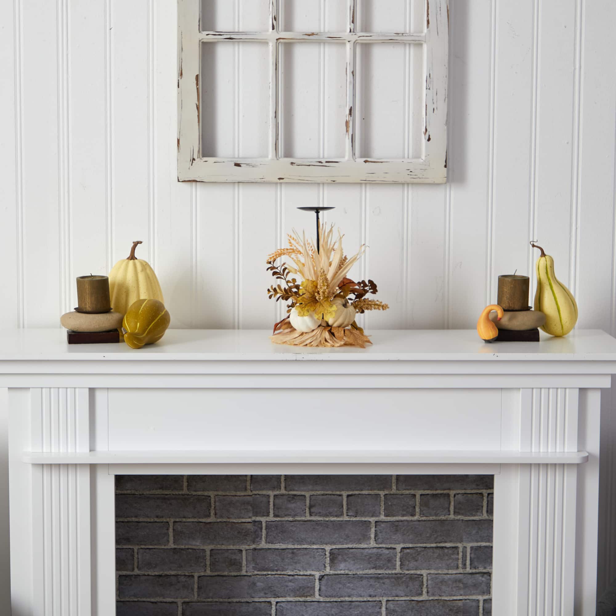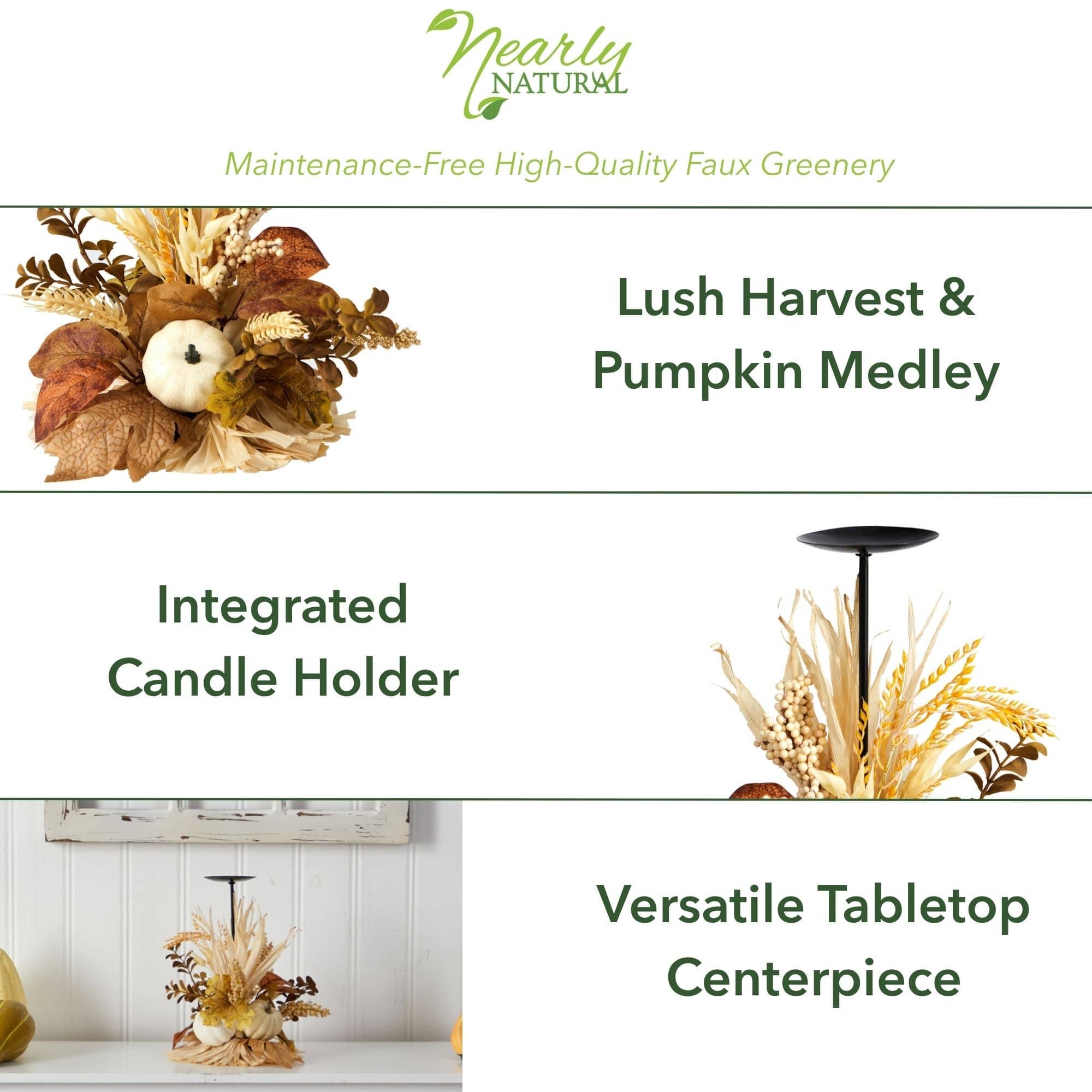 12" Autumn Harvest and Pumpkin Candle Holder Arrangement