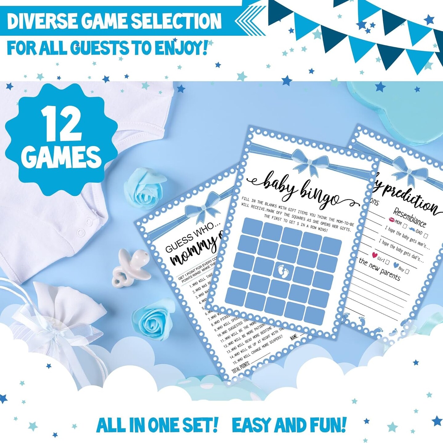 12 Baby Shower Games Activities Cards Kit Set Bundle