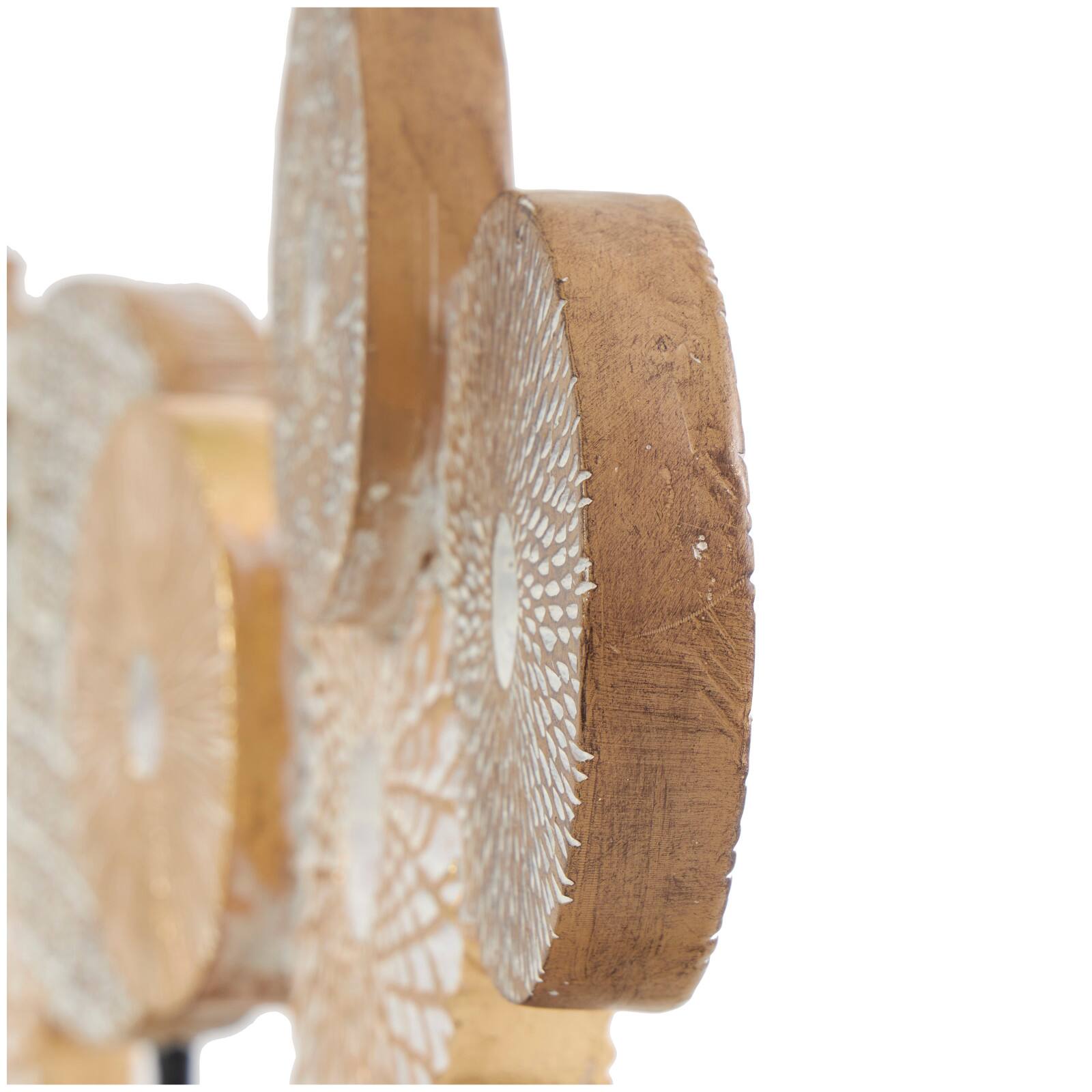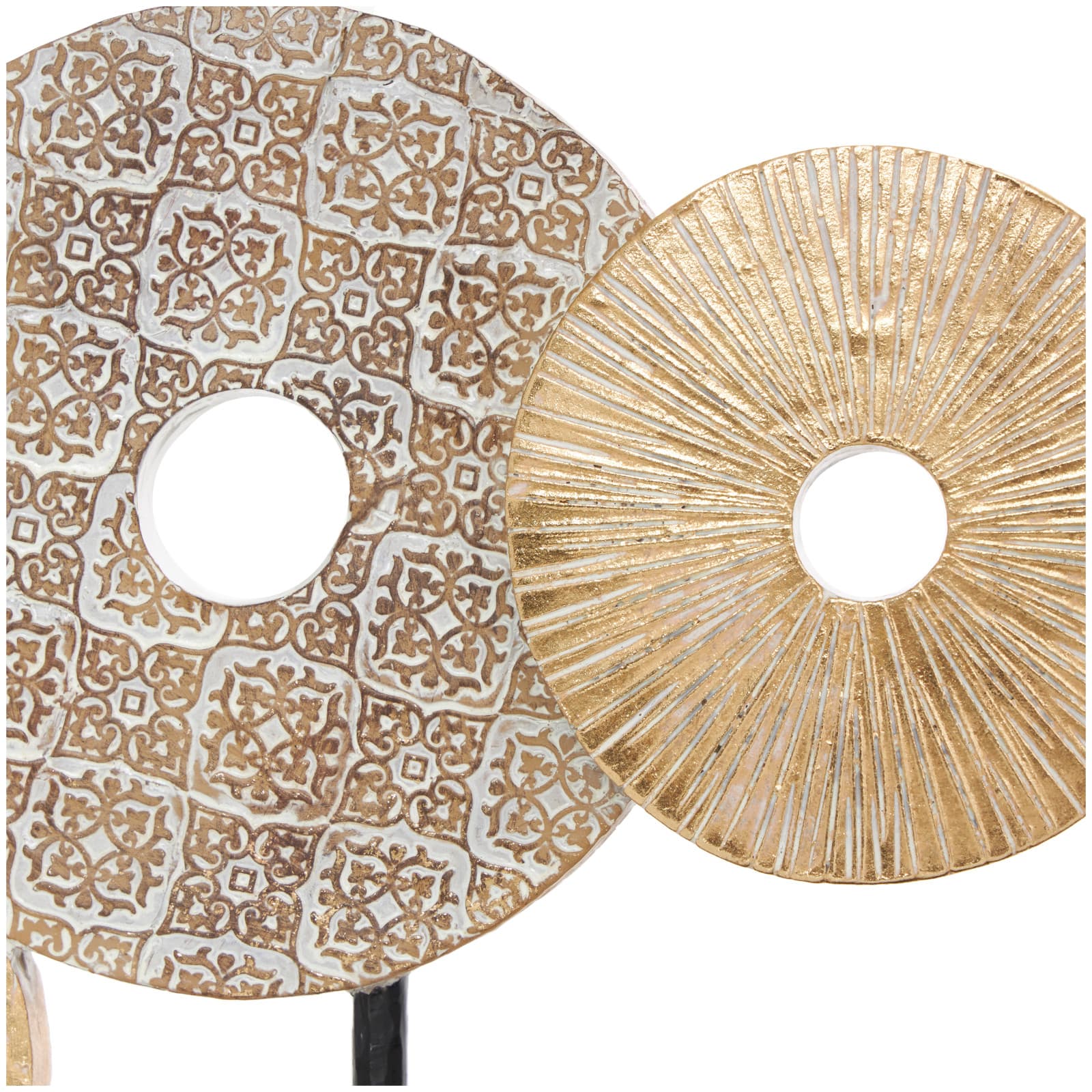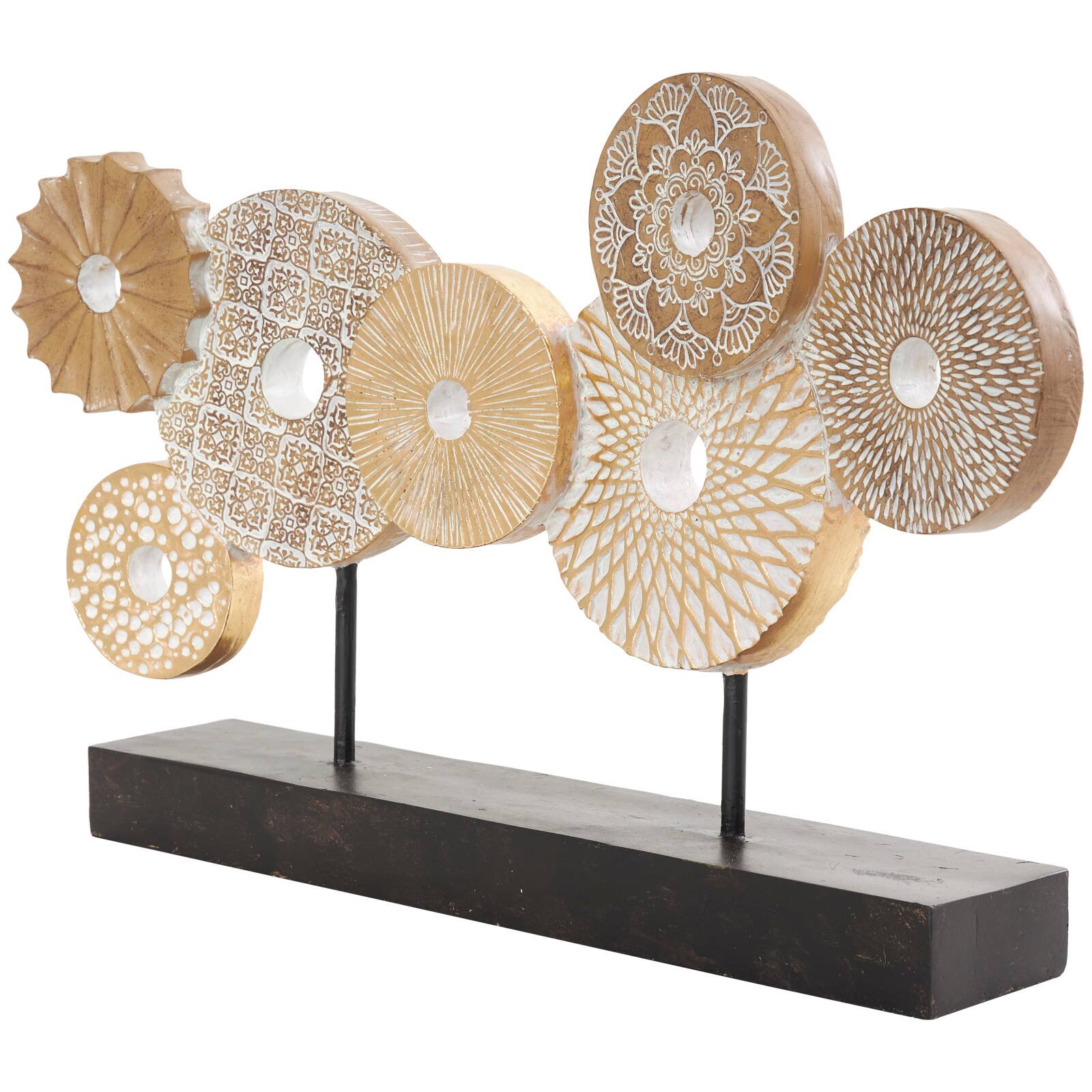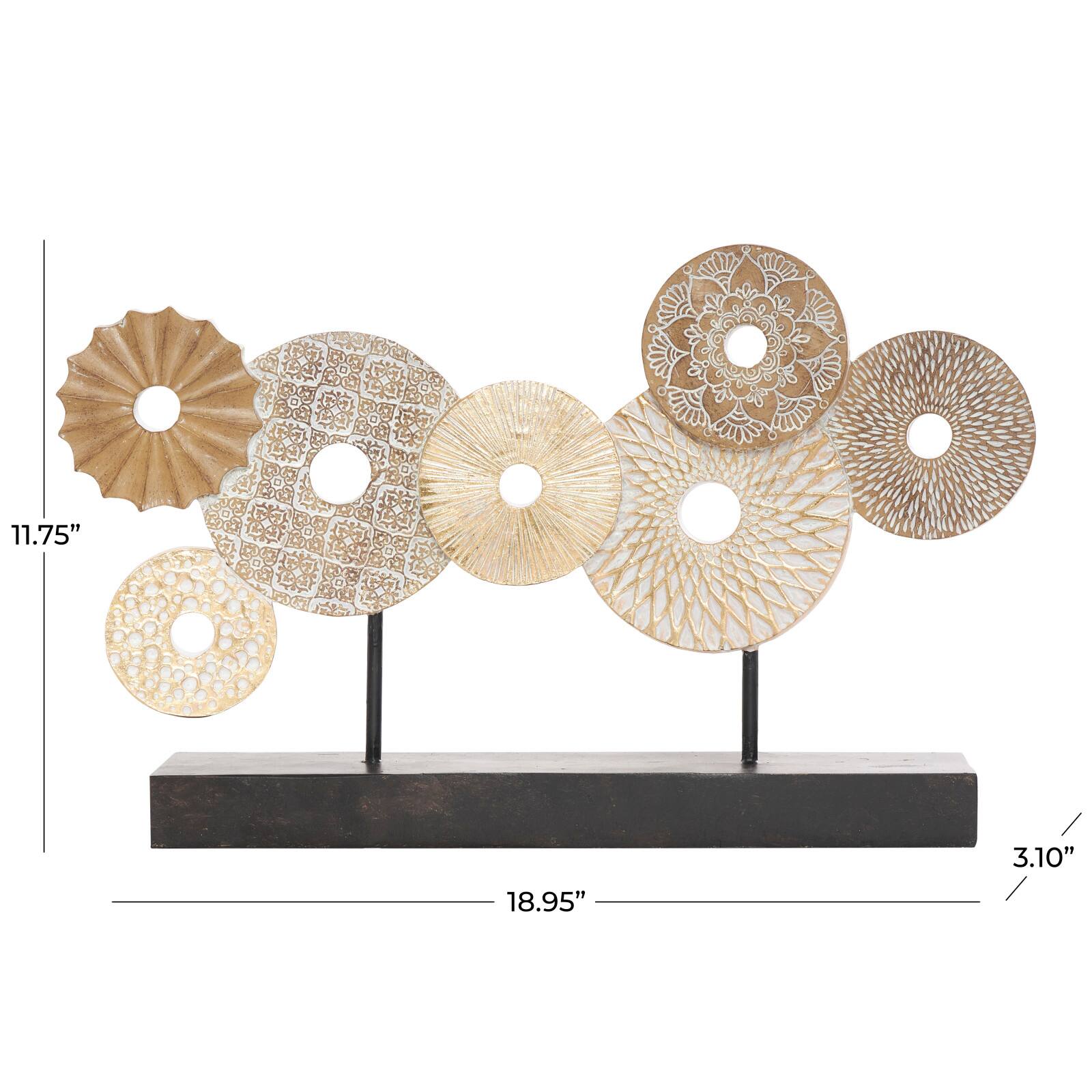 12" Beige Abstract Floral Circle Metal Sculpture Stand