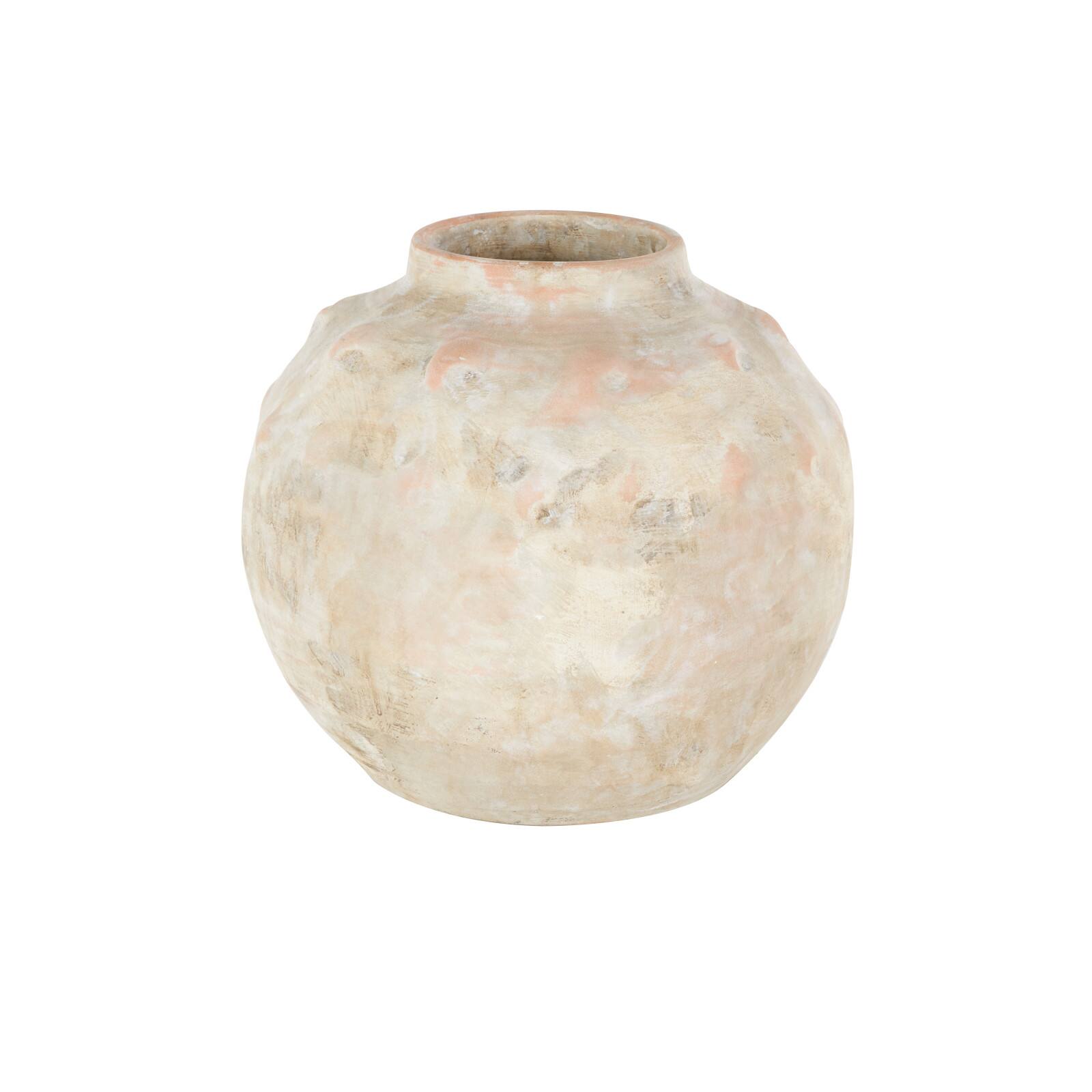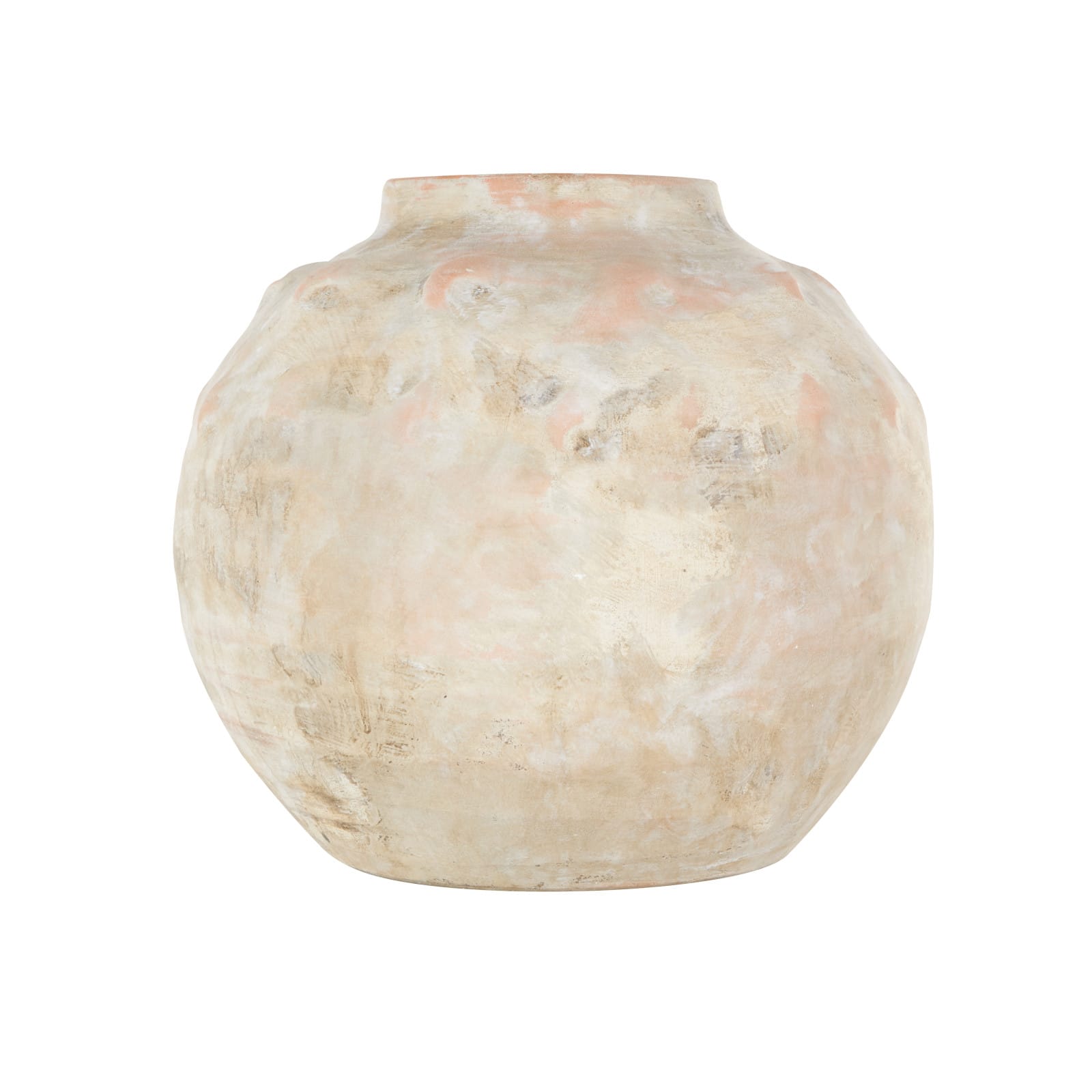 12" Beige & White with Pink Shade Antique Short Wide Ceramic Decorative Vase