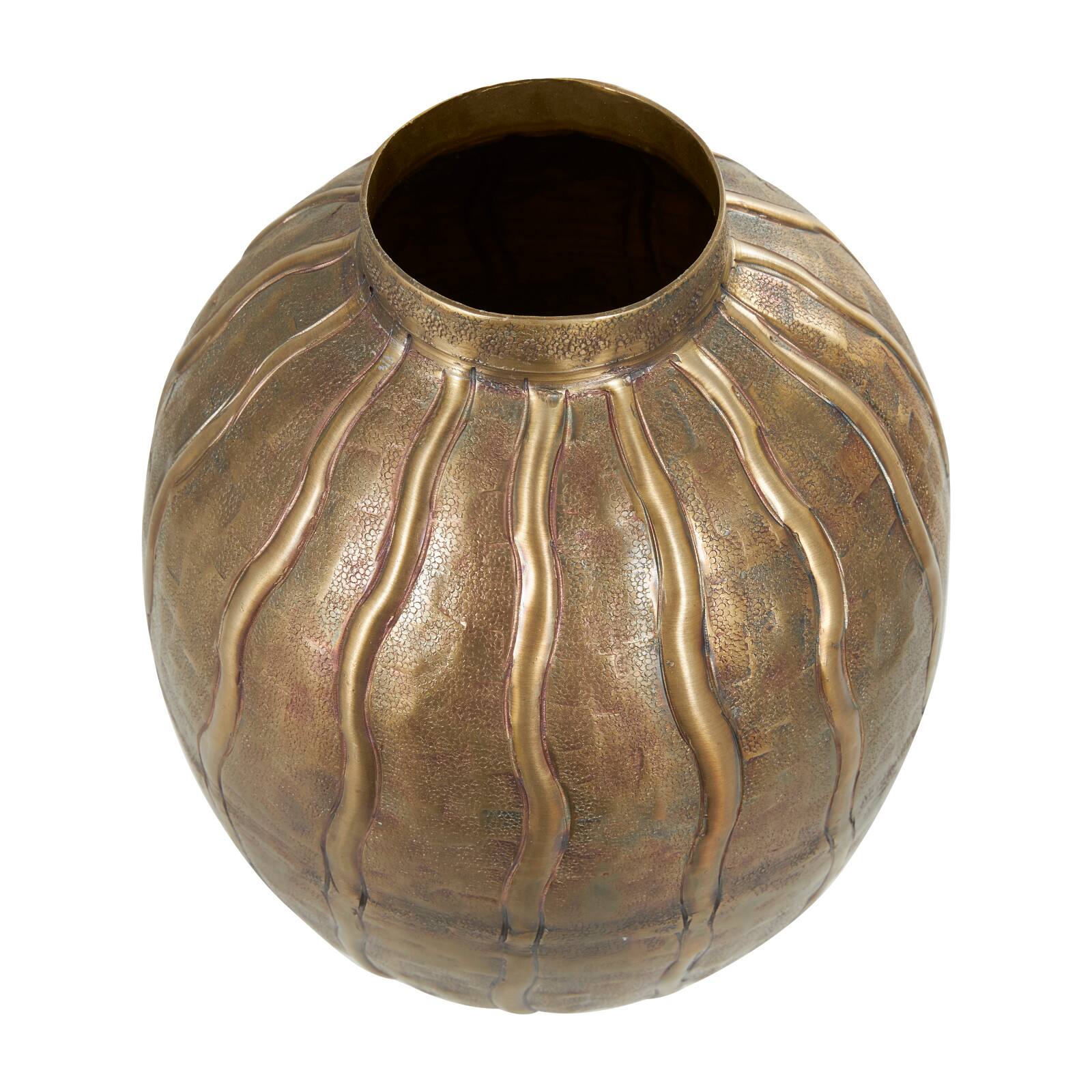 12" Brass Metal Snakeskin Inspired Vase with Dimensional Wavy Accents