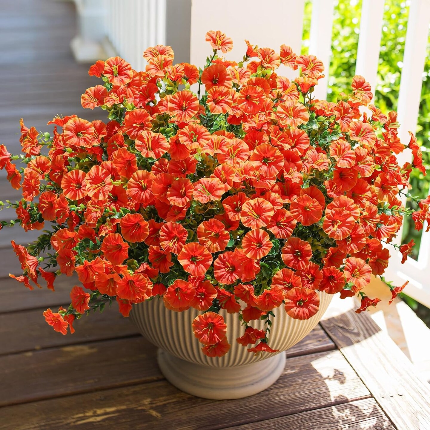 12 Bundles Faux Morning Glory – UV Resistant Artificial Flowers for Outdoor Porch & Yard Decor