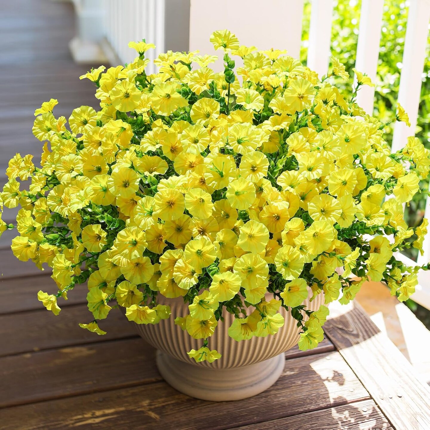 12 Bundles Faux Morning Glory – UV Resistant Artificial Flowers for Outdoor Porch & Yard Decor