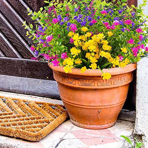 12 Bundles Outdoor Artificial Fake Flowers UV Resistant No Fade Boxwood Faux Plastic Shrubs Plants for Garden Patio Porch Window Box Home Wedding Farmhouse Hanging Décor