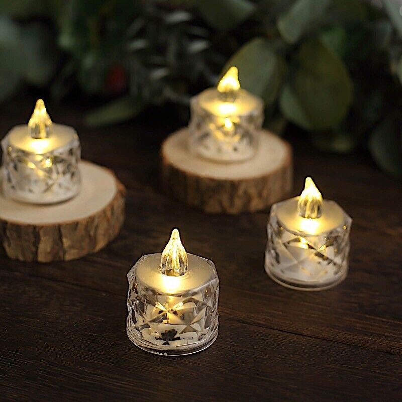 12 Clear 2 in Battery Operated LED Tealight CANDLES Diamond Design