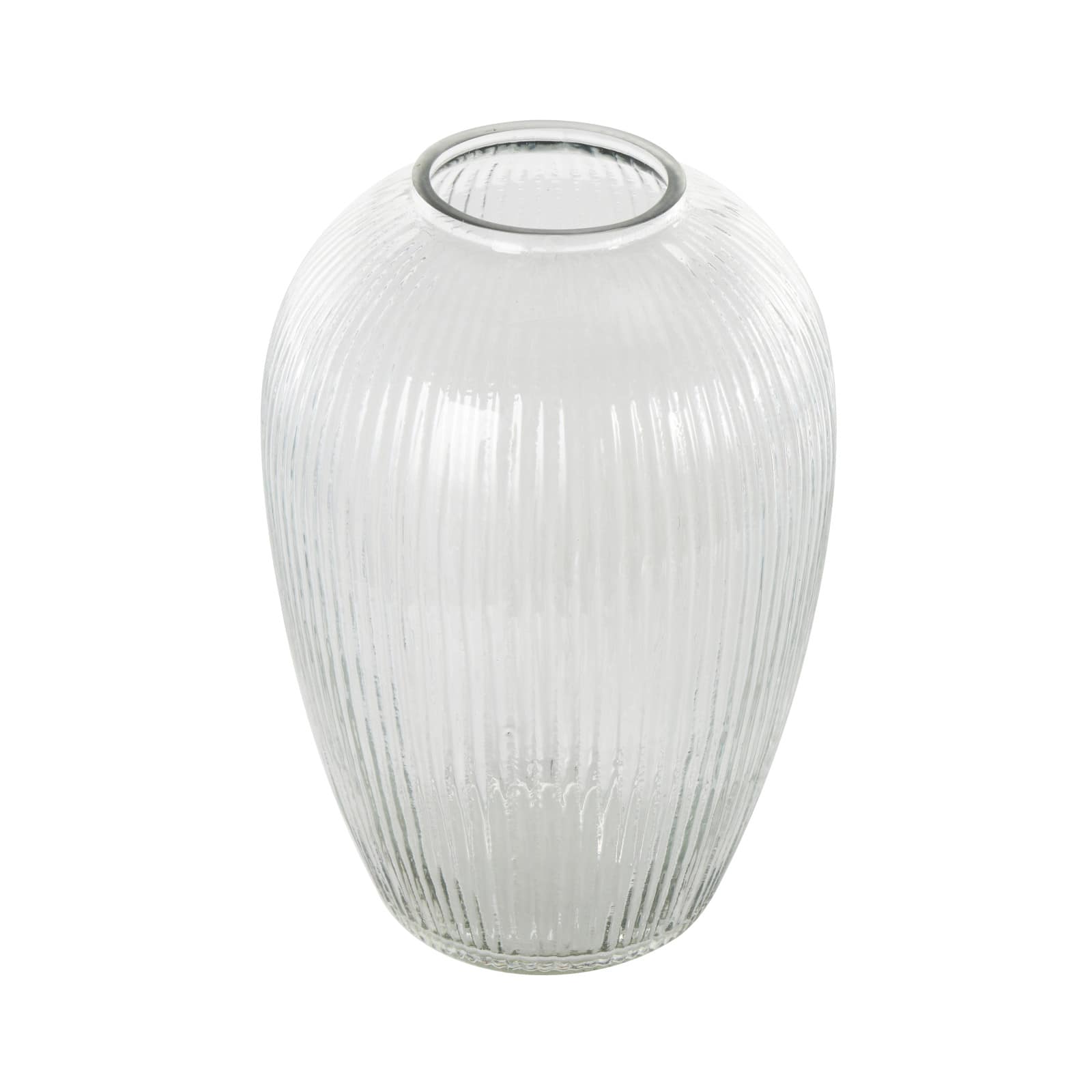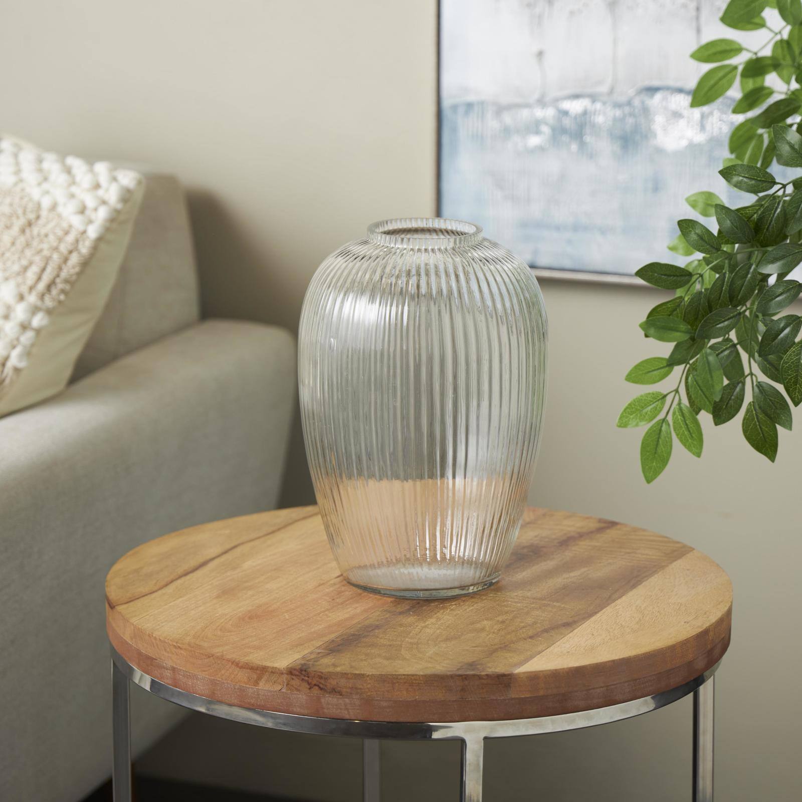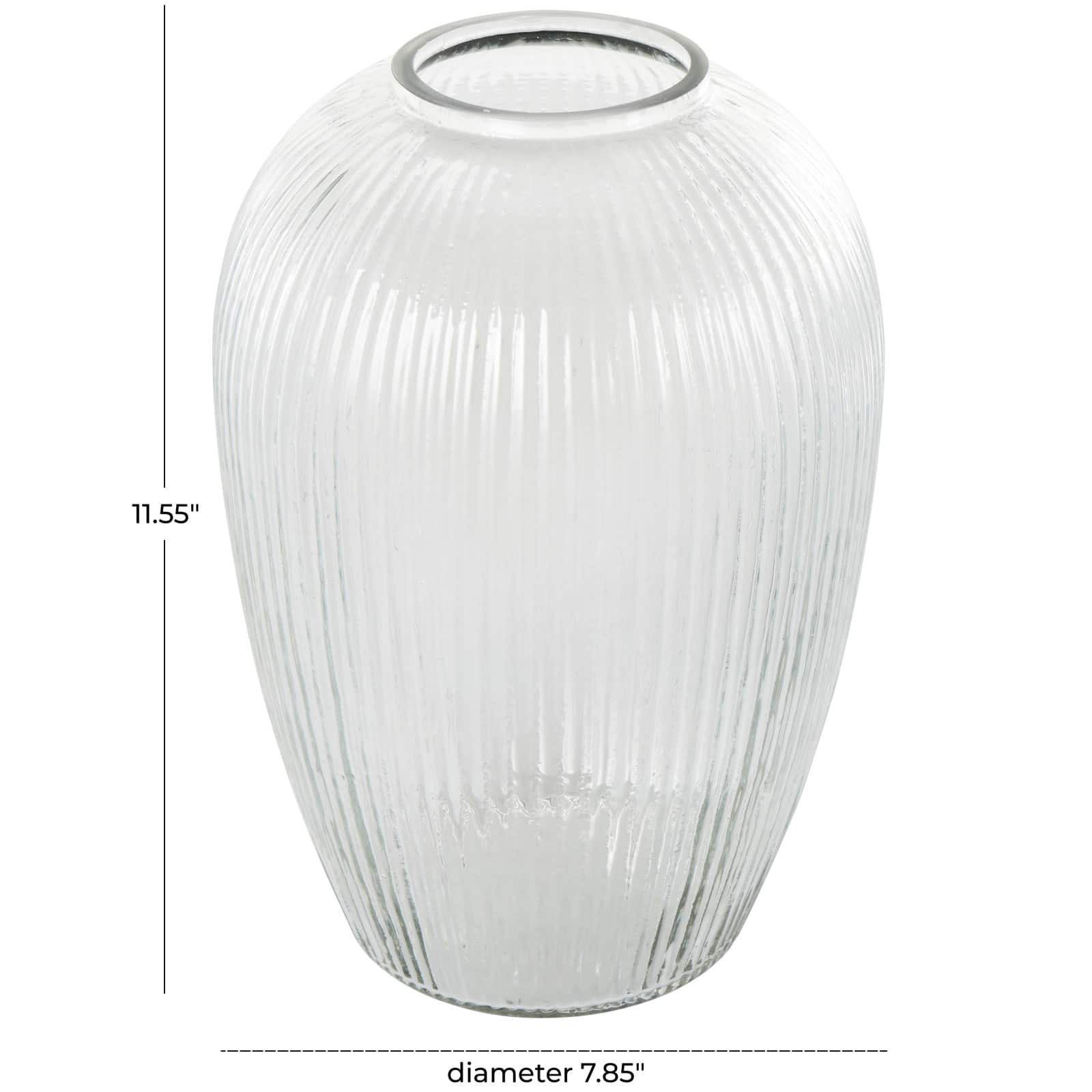 12" Clear Glass Ribbed Fluted Decorative Vase