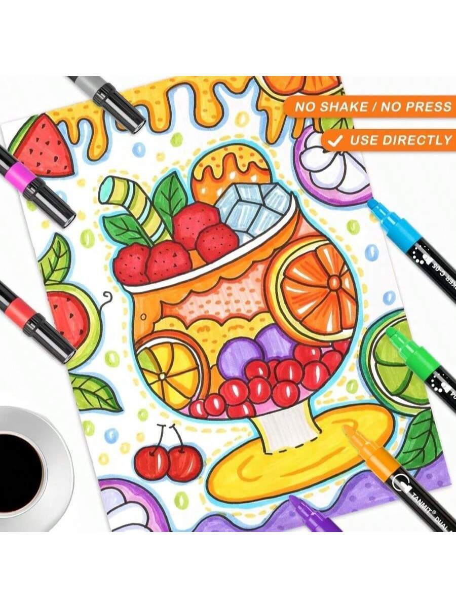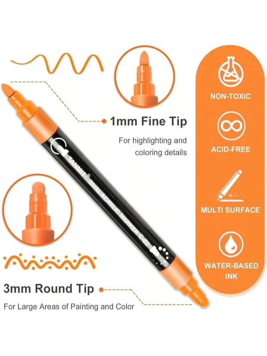 12 Colors Acrylic Paint Pens Markers, Dual-Tip Acrylic Paint Pens