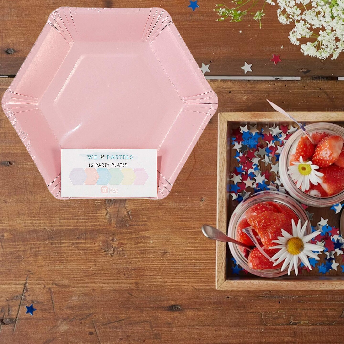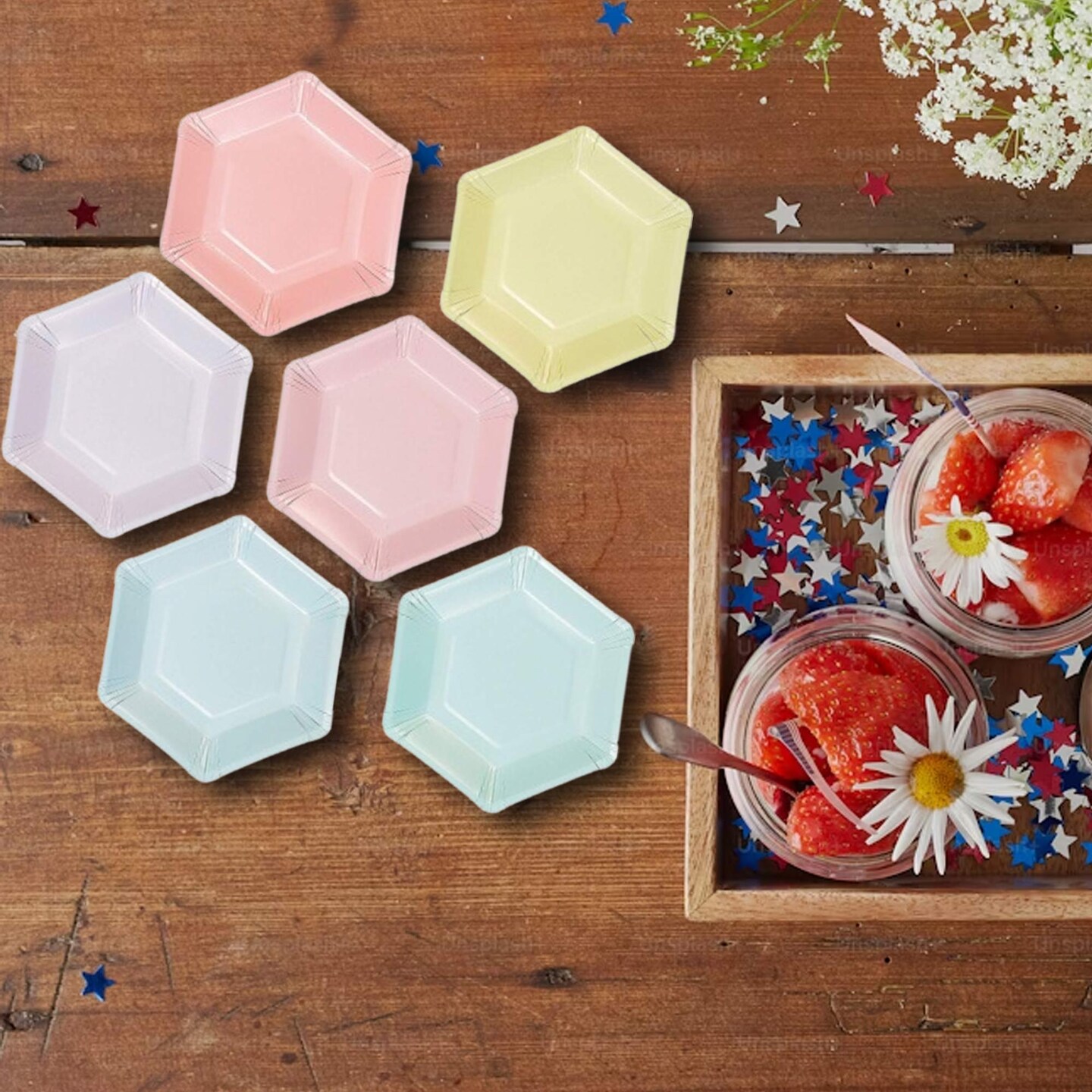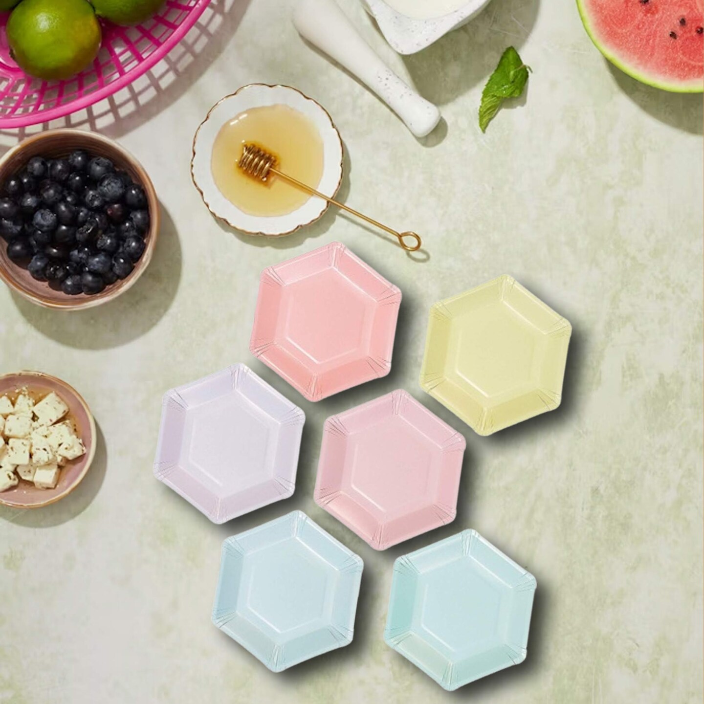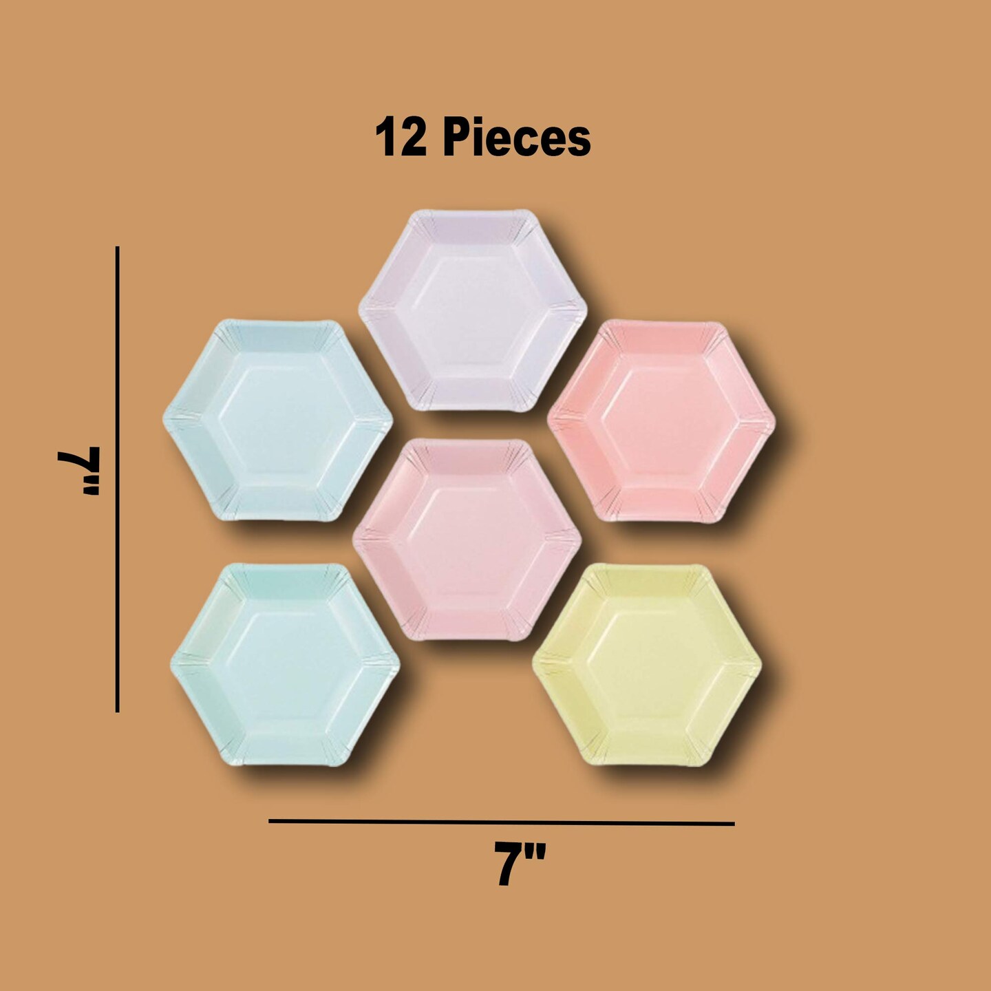 12 Count Pastel Color Hexagonal Paper Dessert Plates 7 Inch