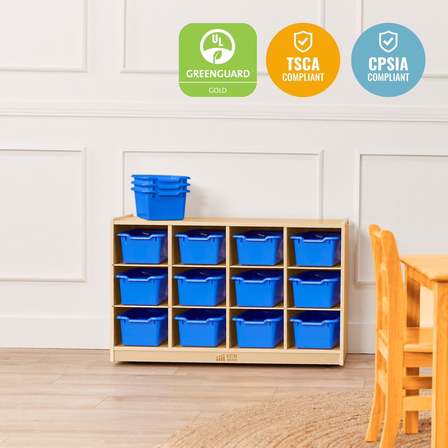 12 Cubby Mobile Tray Cabinet and 15 Scoop Front Bins, 3x4