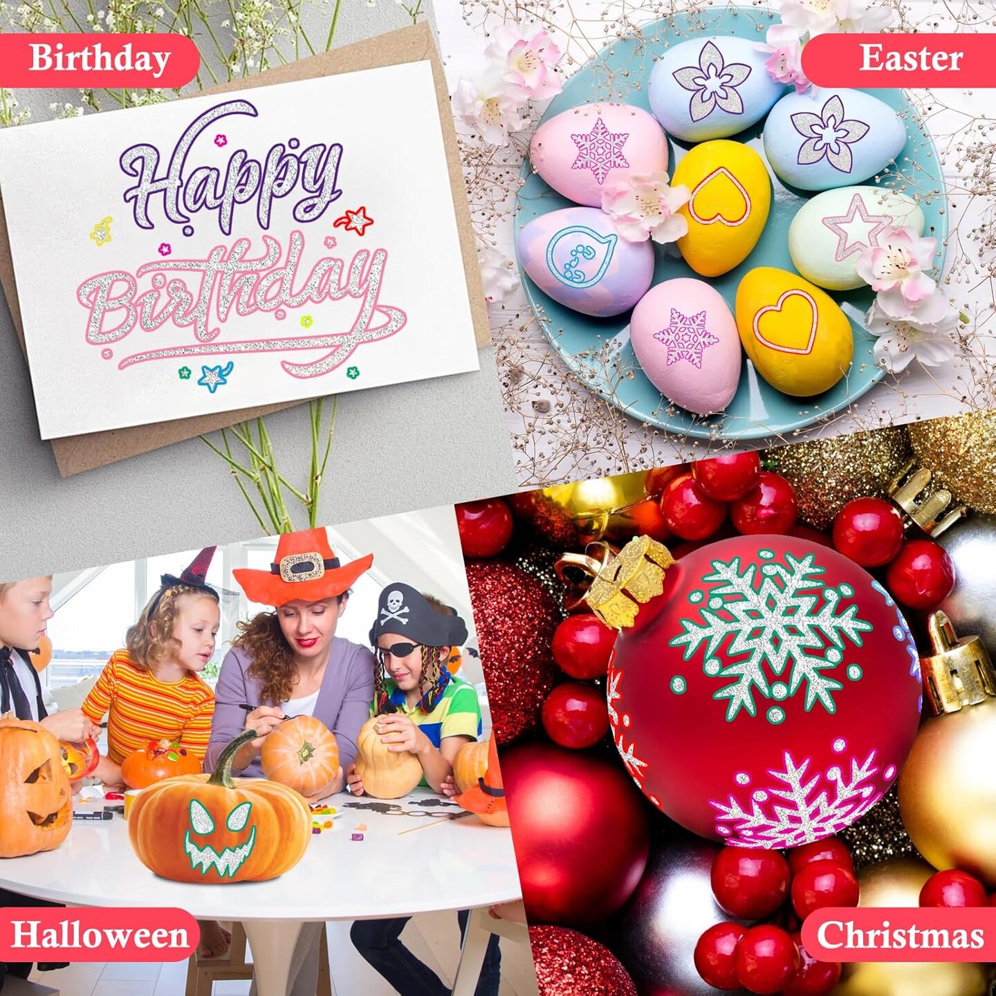 12 Glitter Outline Markers for Teens & Kids – Shimmer Metallic Pens for Christmas, Art Projects, DIY Crafts, Stocking Stuffers for Girls Ages 6-12