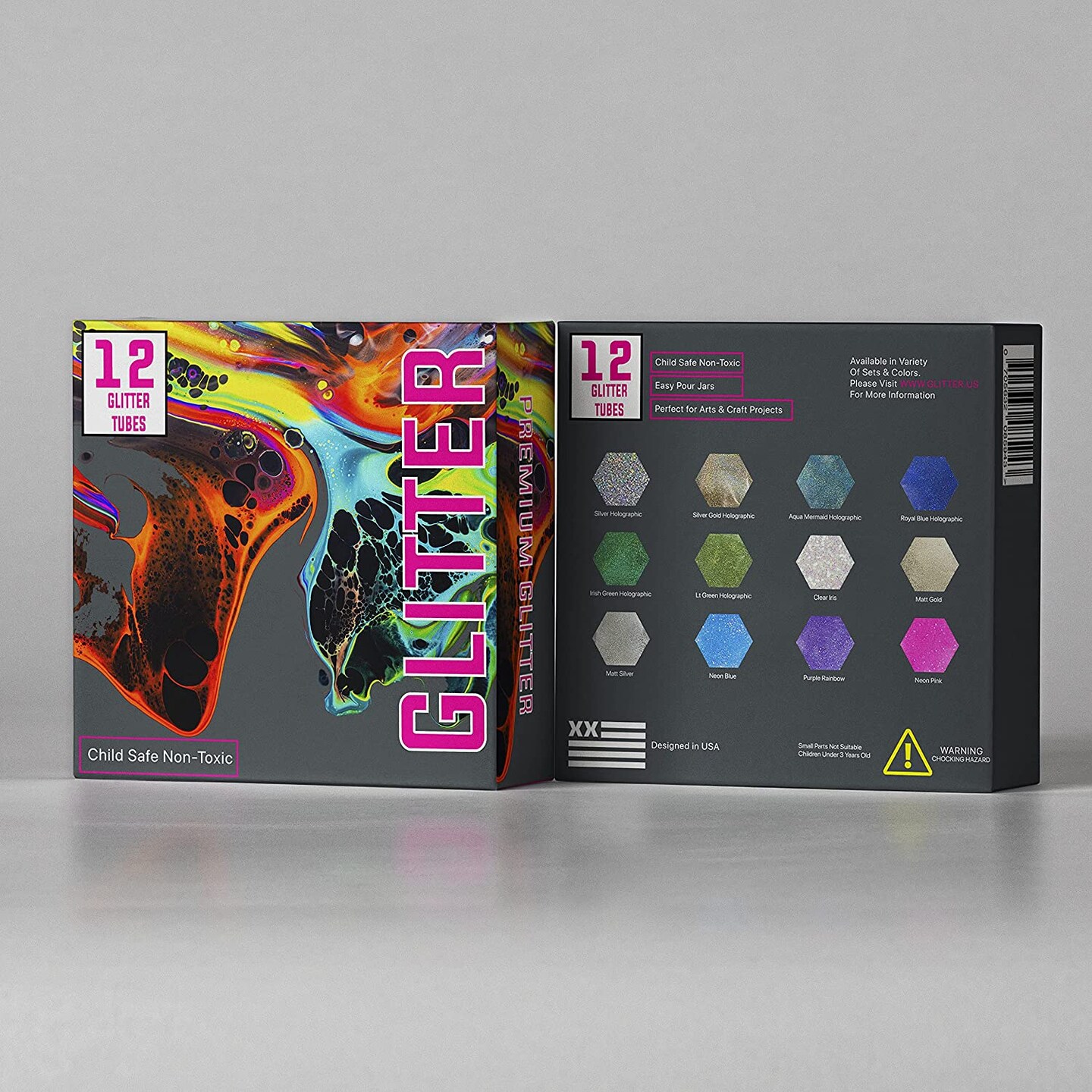 12 Glitter Tube Craft Box (0.34oz/9.6g) All-Purpose Ultrafine Glitter for Arts and Crafts, DIY Scrapbooks, Slime, Epoxy Resin, Kids Schools, Cosmetic, Nail Design, Shaker Tubes- PACK 2
