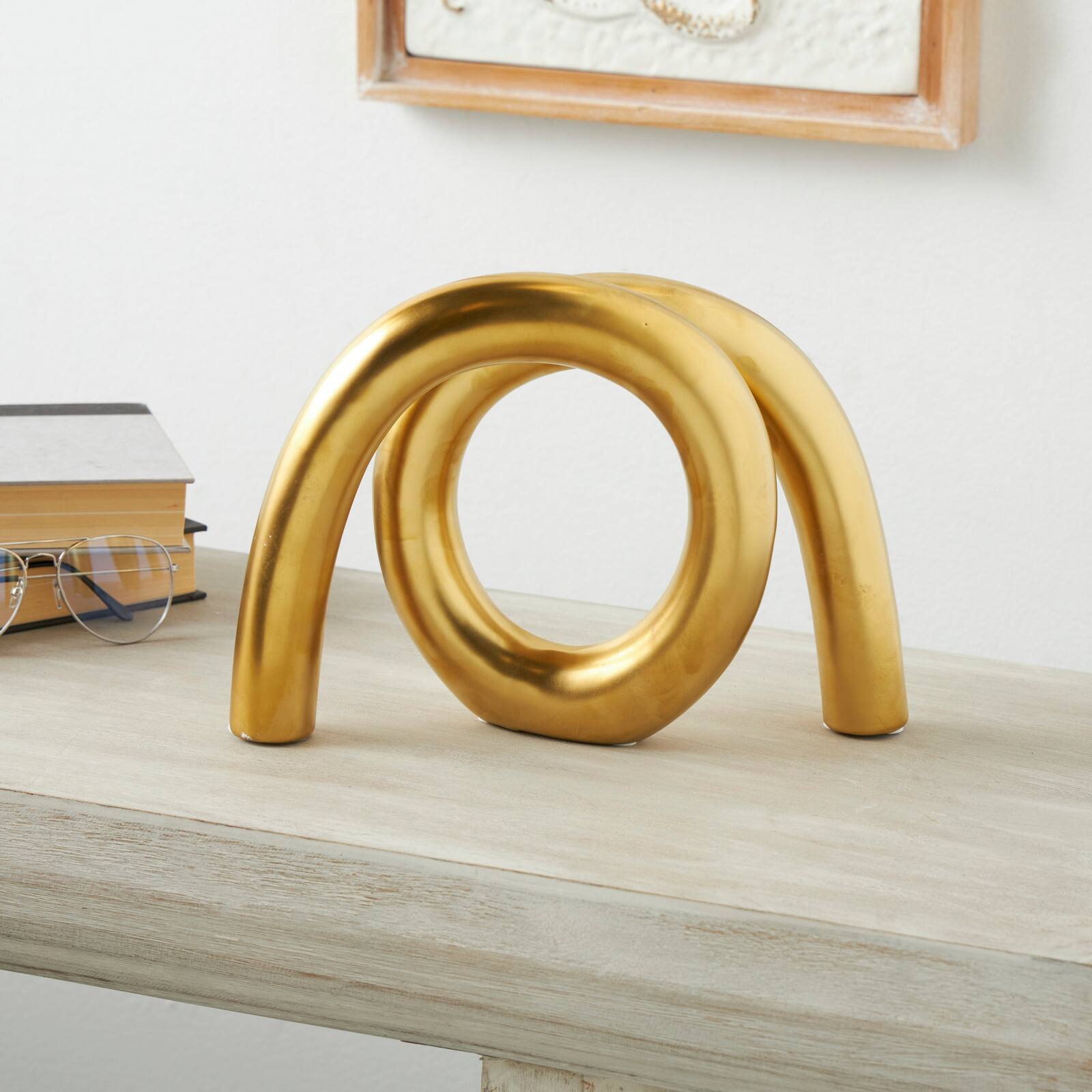 12" Gold Ceramic Abstract Rounded Loop Sculpture