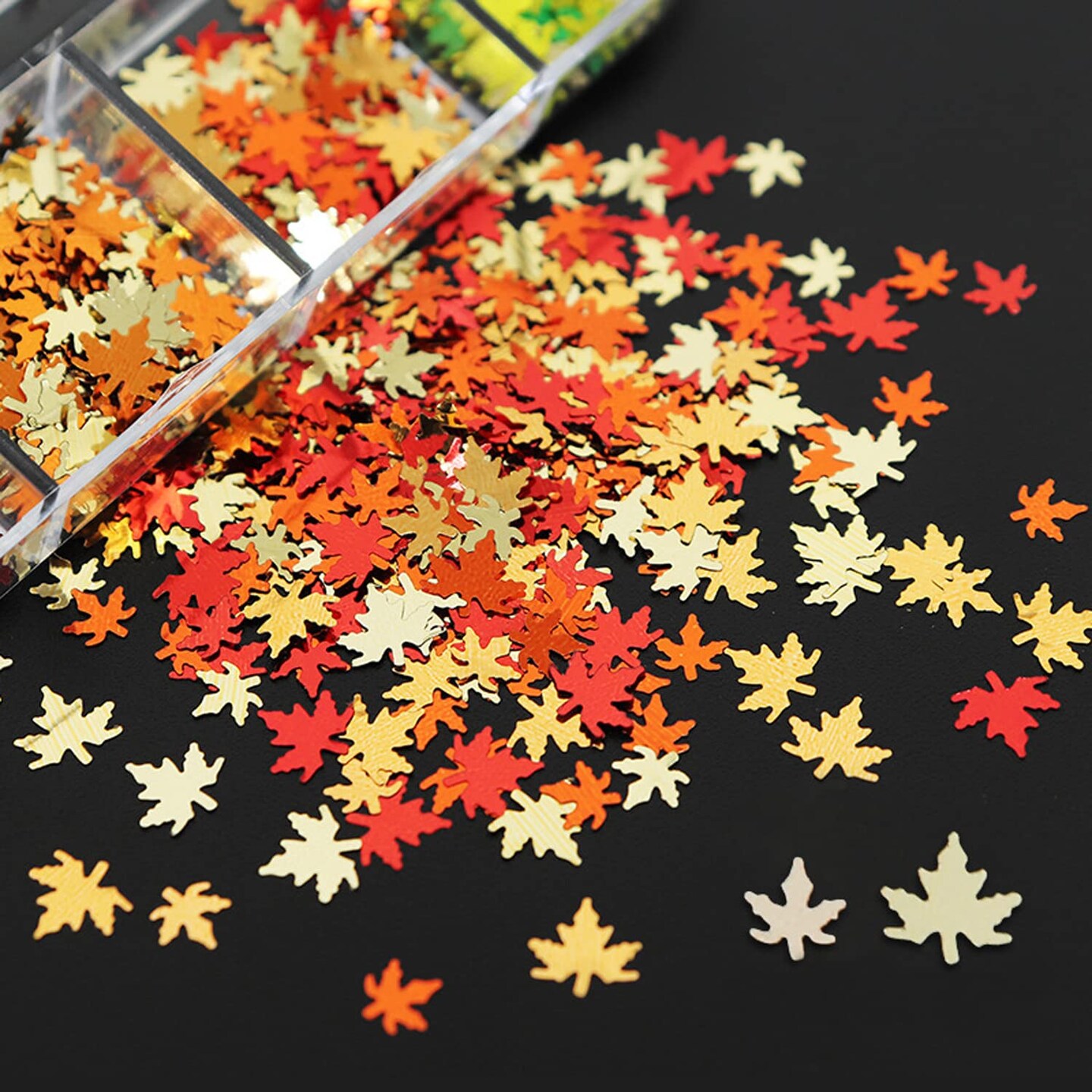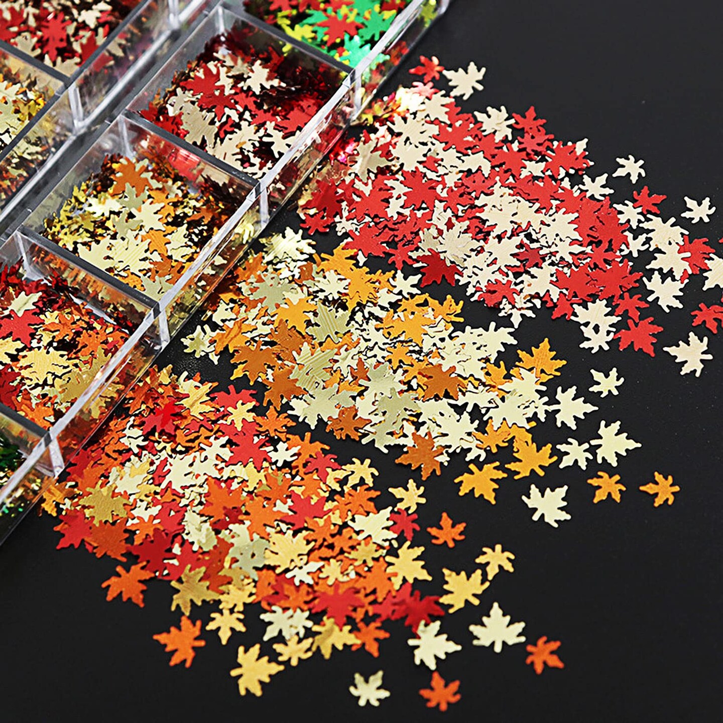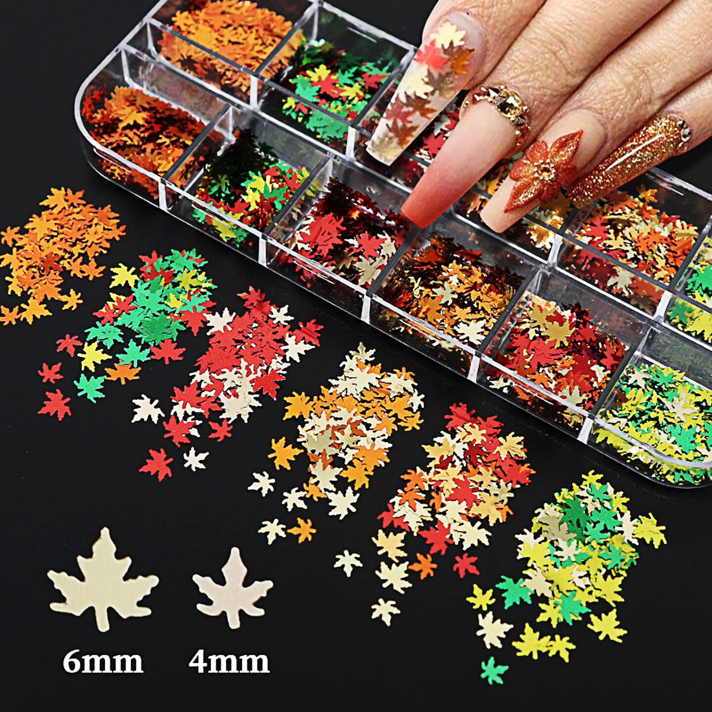 12 Grids Fall Maple Leaf Nail Art Glitter Sequins 3D Holographic(Gold, Red, Orange, Green, Yellow) 5.04 x 2.05 x 0.47 inches