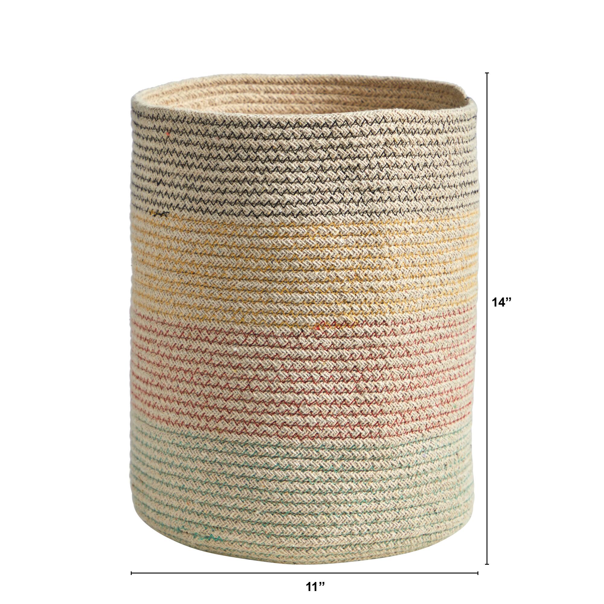 12" Handmade Natural Cotton Multicolored Woven Basket Planter