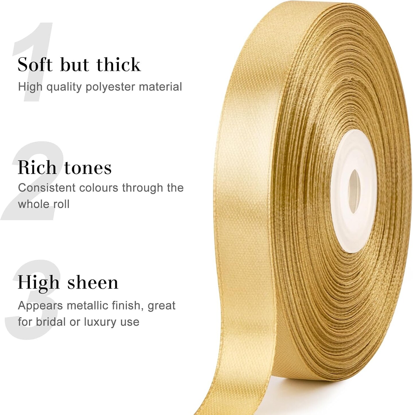 1/2 Inch 50 Yards Champaign Gold Satin Ribbon (champagne gold) 1800"L x 0.5"W