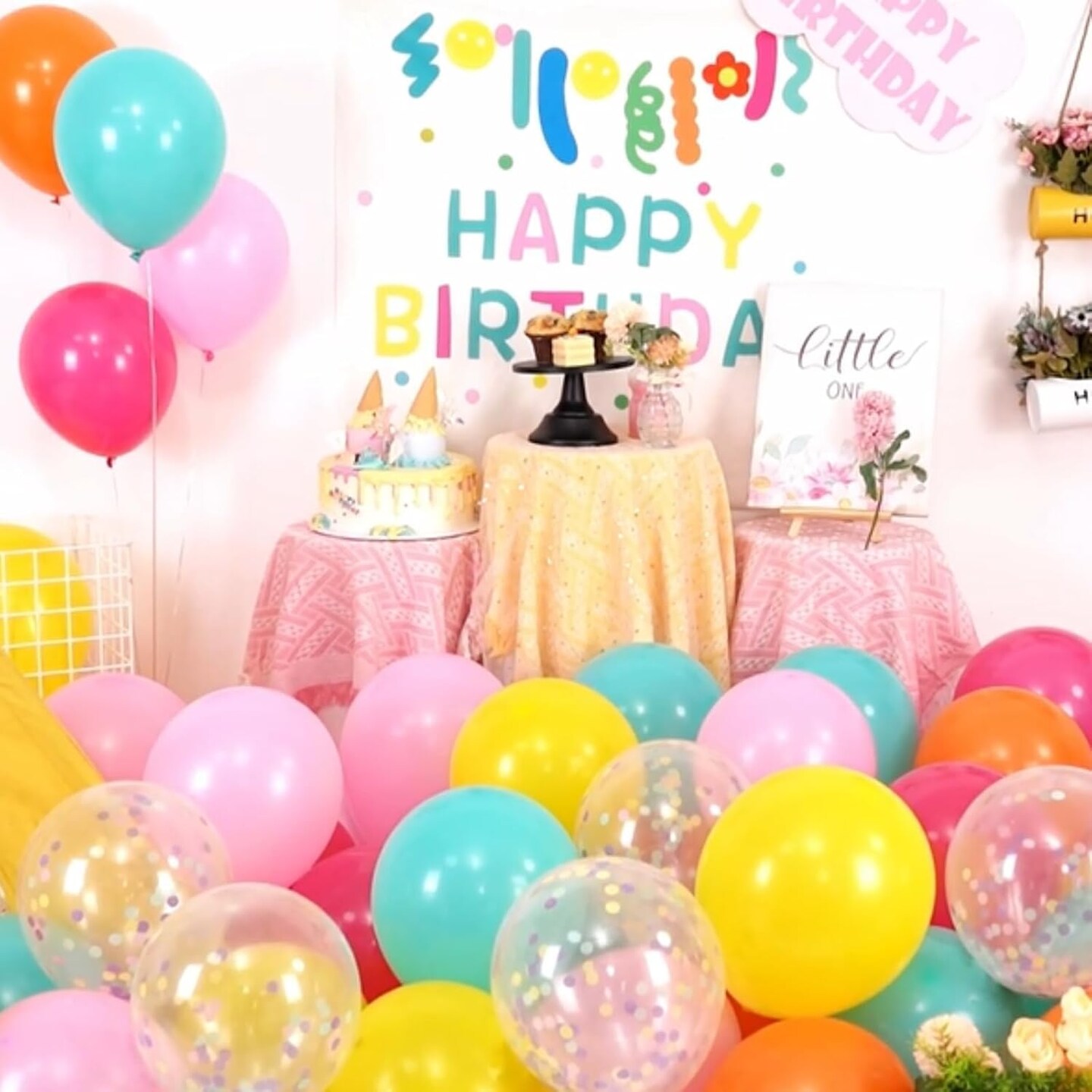 12 Inch Bright Color Yellow Orange Hot Pink Teal Blue Confetti Balloon(Rainbow)