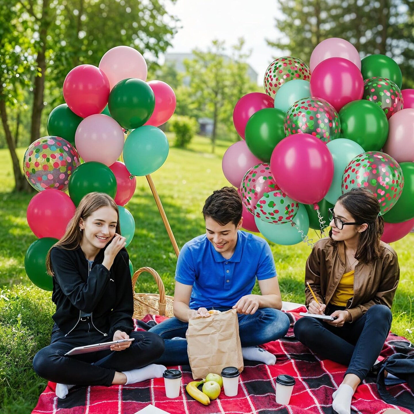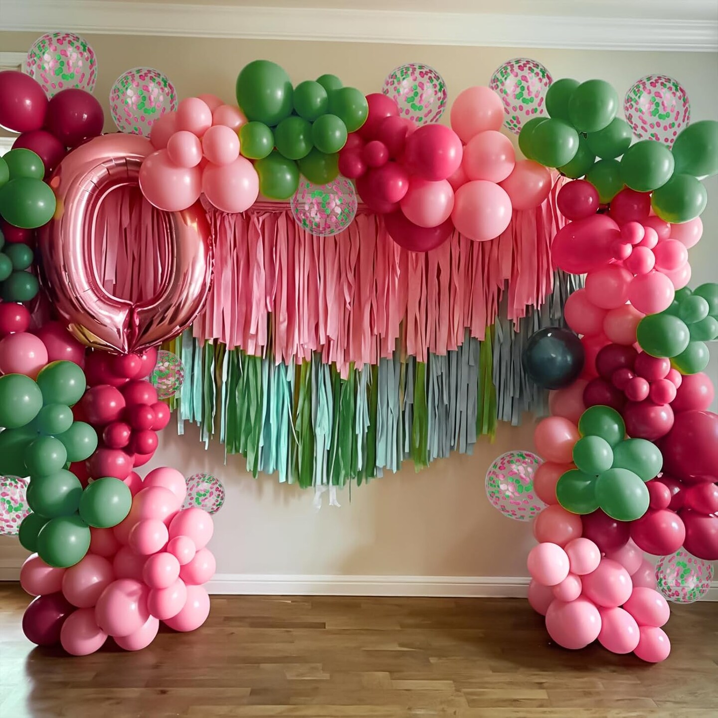 12 Inch Hot Pink Maca Green Latex Balloon(7 x 5 x 0.5 inches)