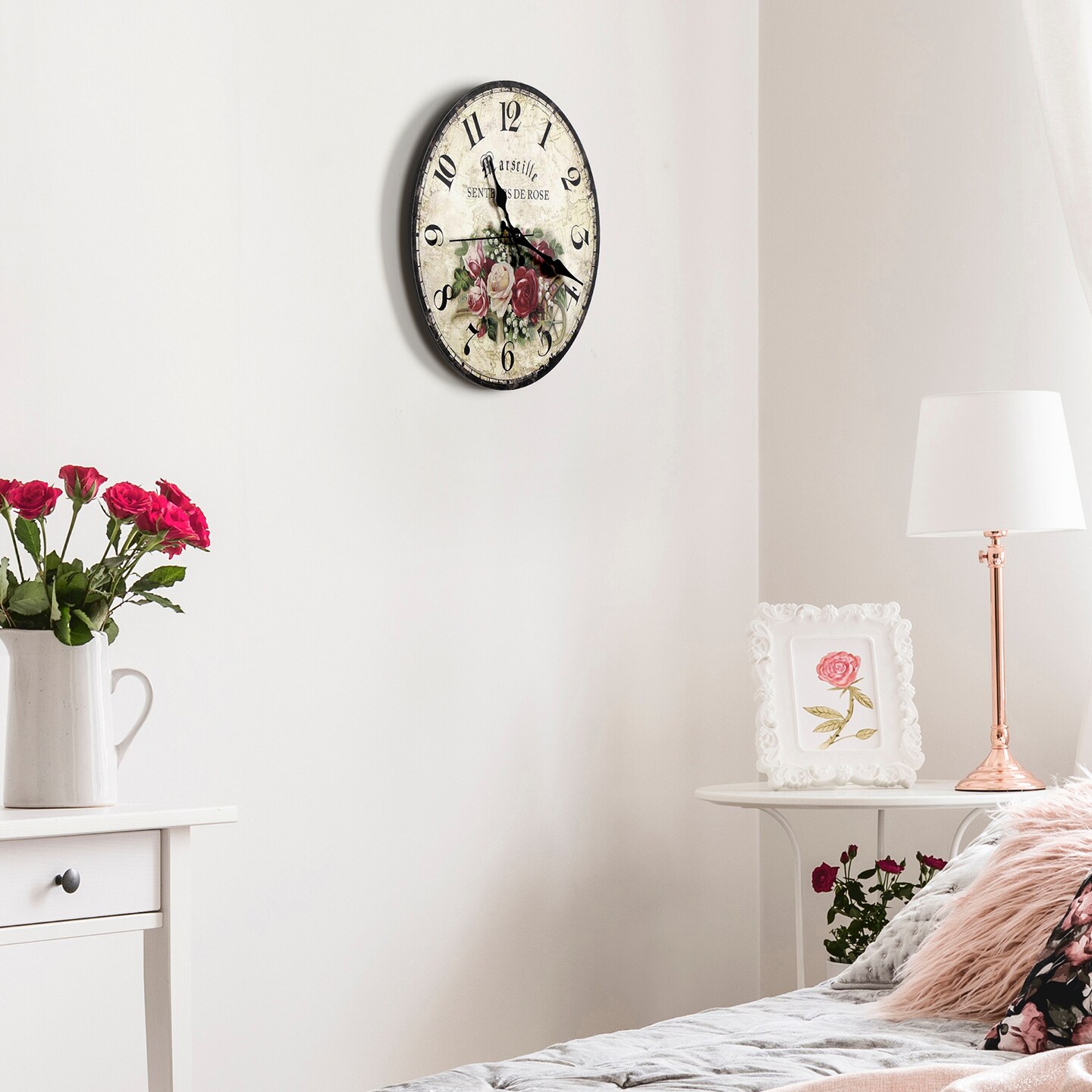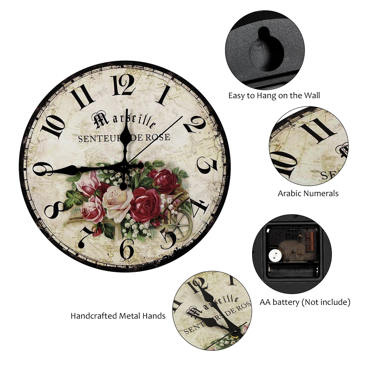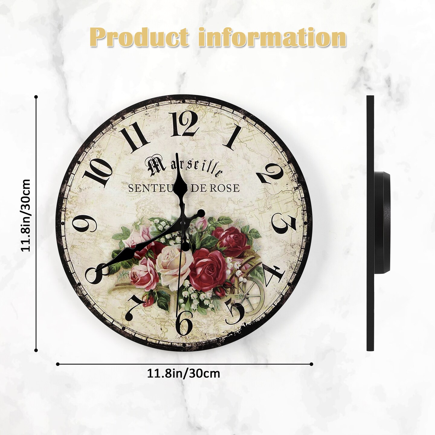 12 Inch Vintage Wall Clock Battery Operated (30 cm) - Silent Frameless Decorative Indoor Clock for Kitchen, Bedroom, Living Room