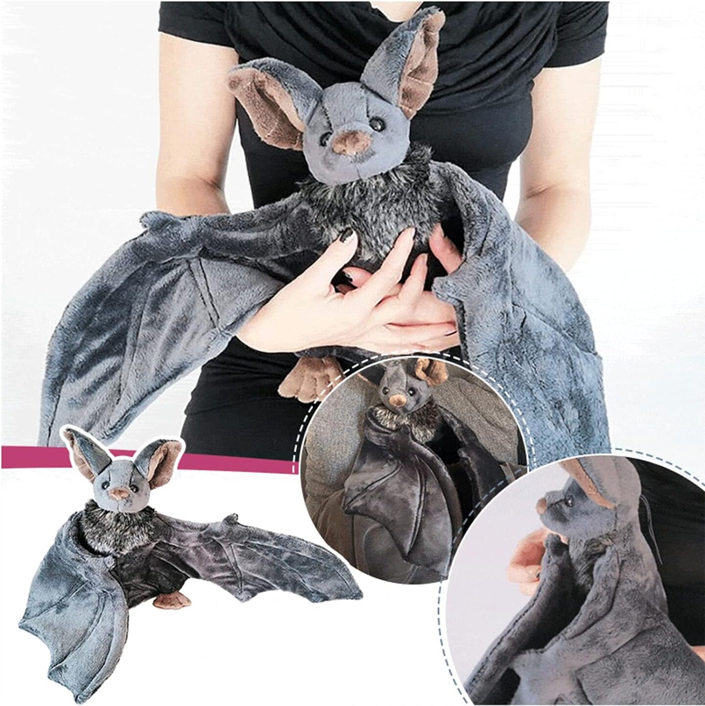 12" Large Bat Plush Toys, Creepy Goth Bat Stuffed Animal Lifelike Bats