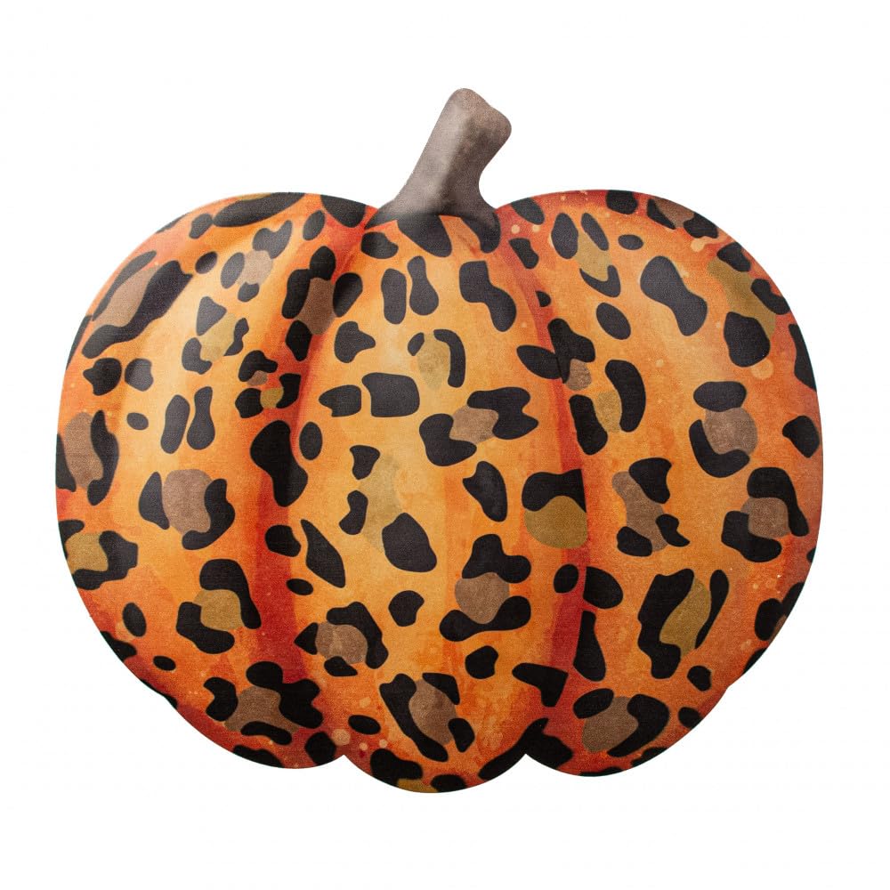 12" Leopard Print Pumpkin Sign, Embossed Metal - Orange, Black, Tan, Brown - for Wreath Accents, Centerpieces, Walls, Crafts, and Decorations - Fall, Halloween, Thanksgiving