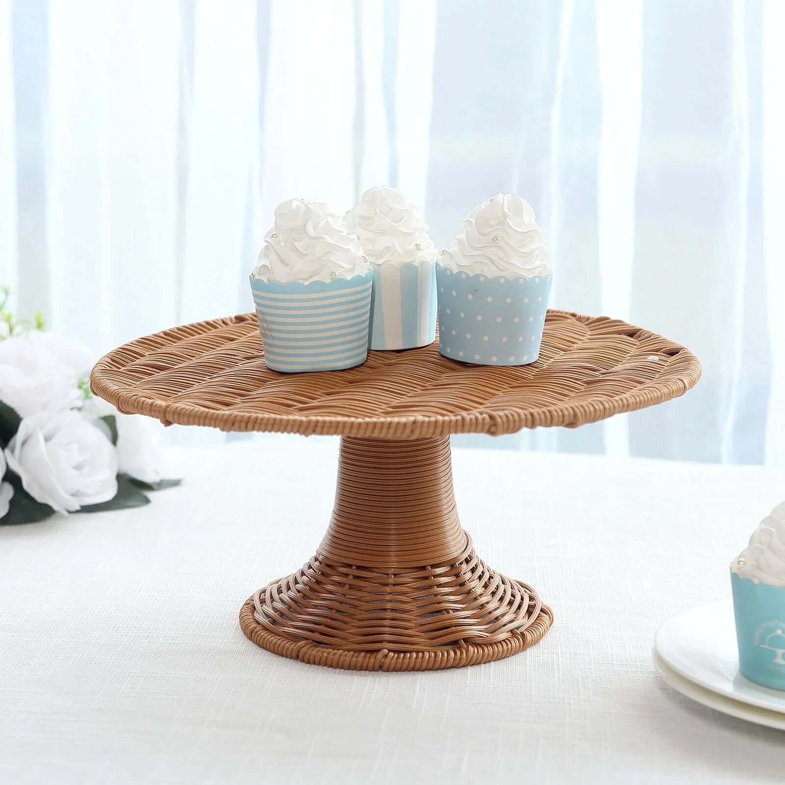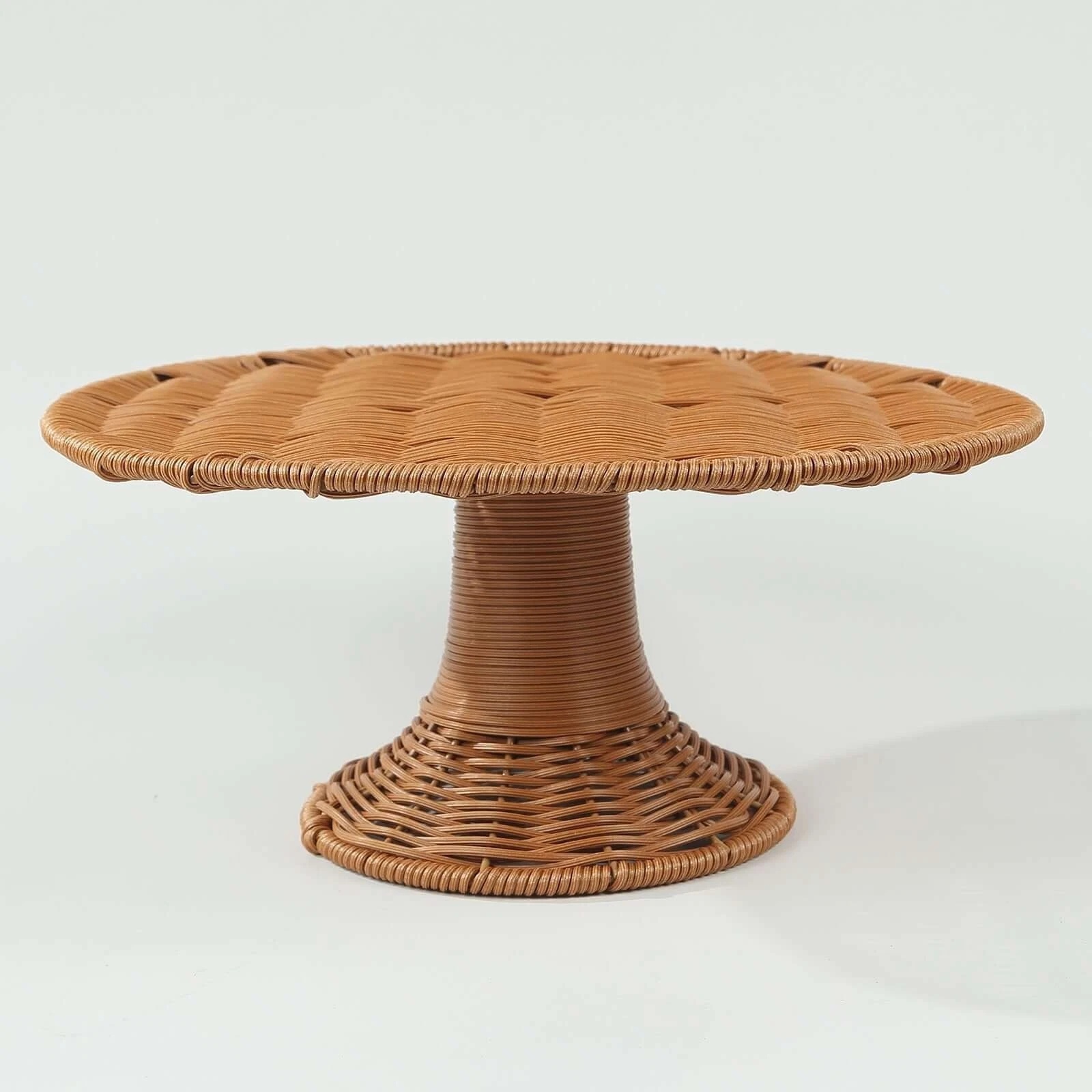 12" Natural Rattan Wicker Pedestal Cake Stand