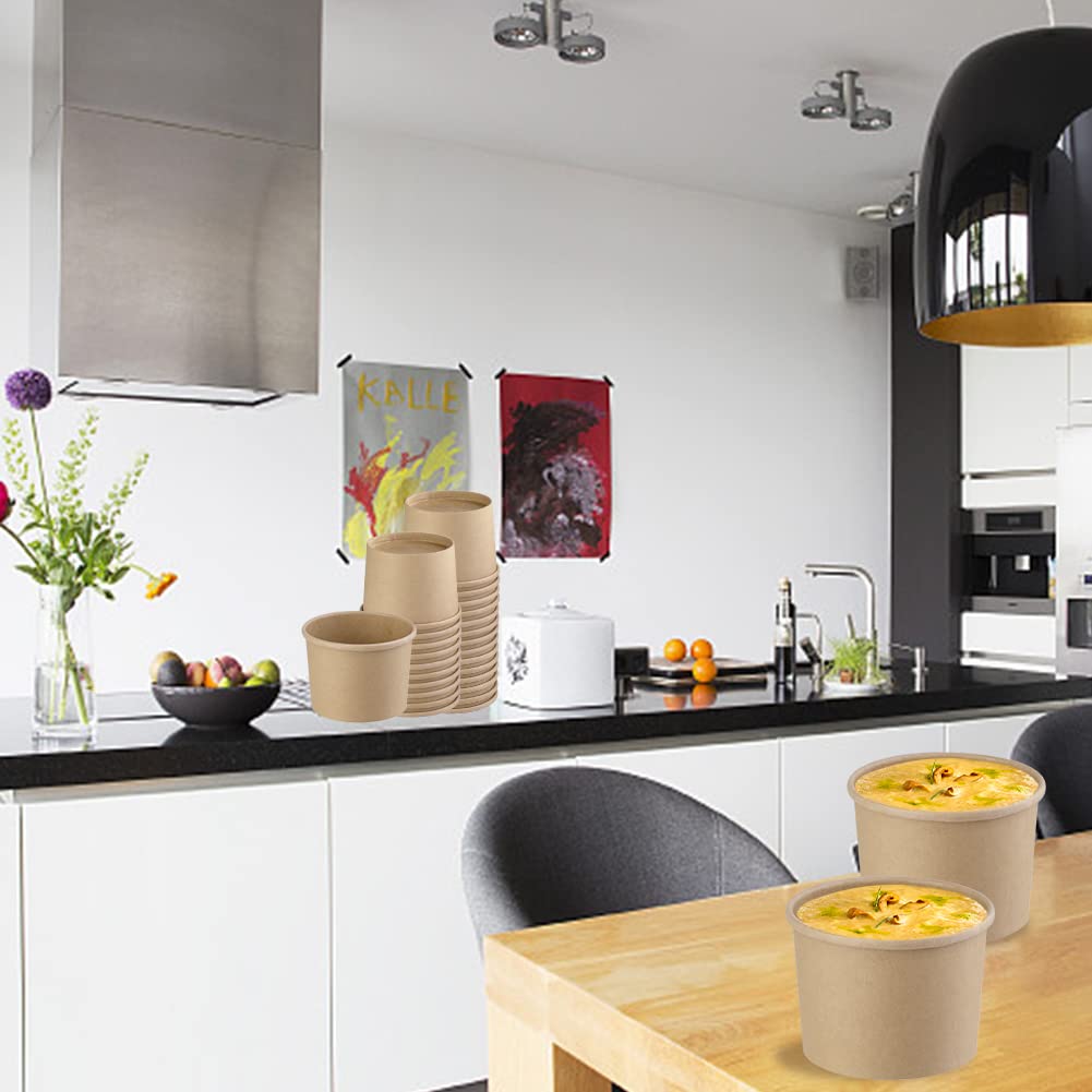 12 oz 25 Pack Paper Soup Containers with lids, Disposable Kraft Food Cups, Soup Cups Paper Ice Cream Cup, Dessert Cup, Yogurt Ice Cream Containers. Great For Restaurants, Take Outs, or To-Go Lunch