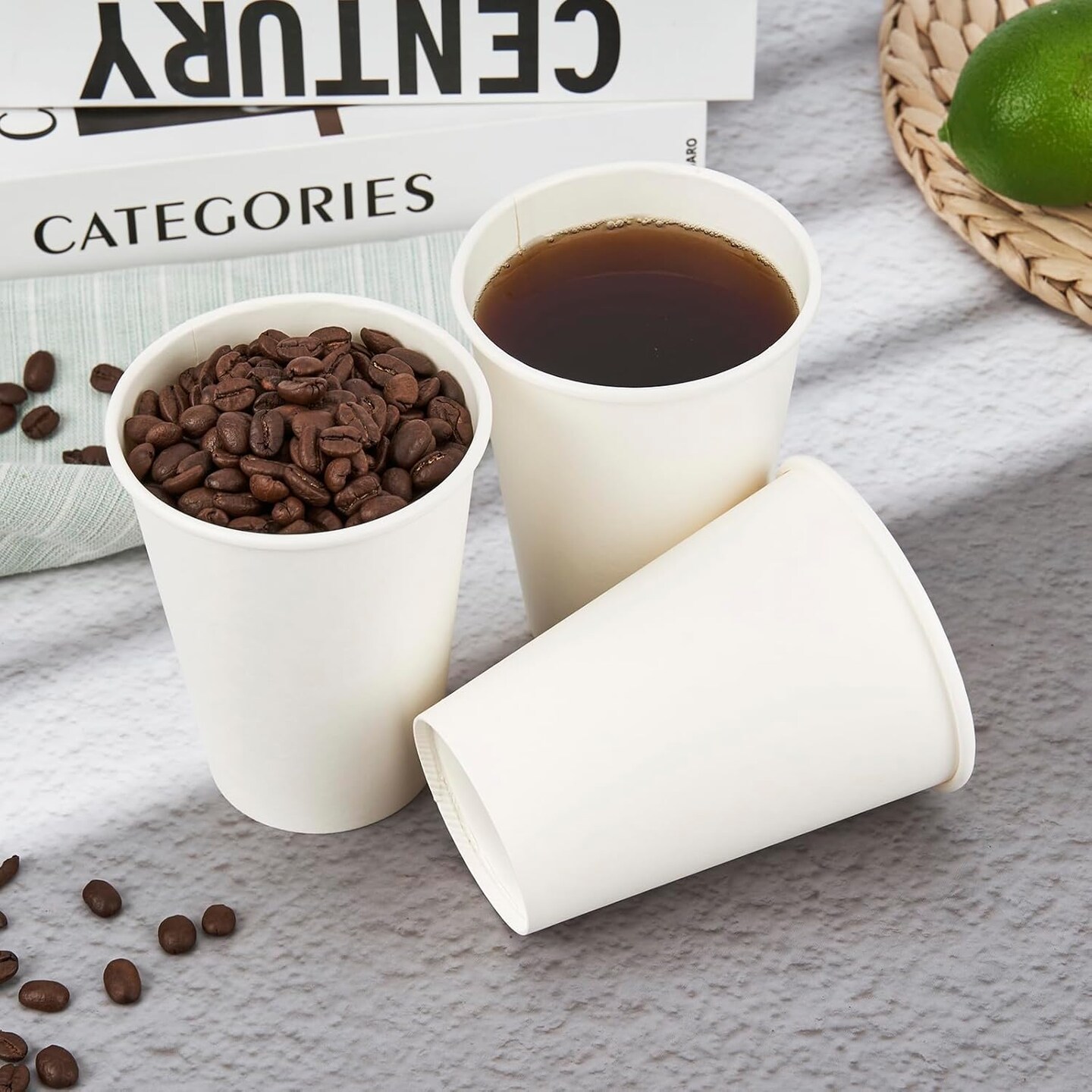 12 oz 300 Pack Paper Cups, Summer Party Tableware, Hot Beverage Drinking Cups, White Paper Hot Disposable Cups, Suitable for Party, Picnic, Travel, and Events
