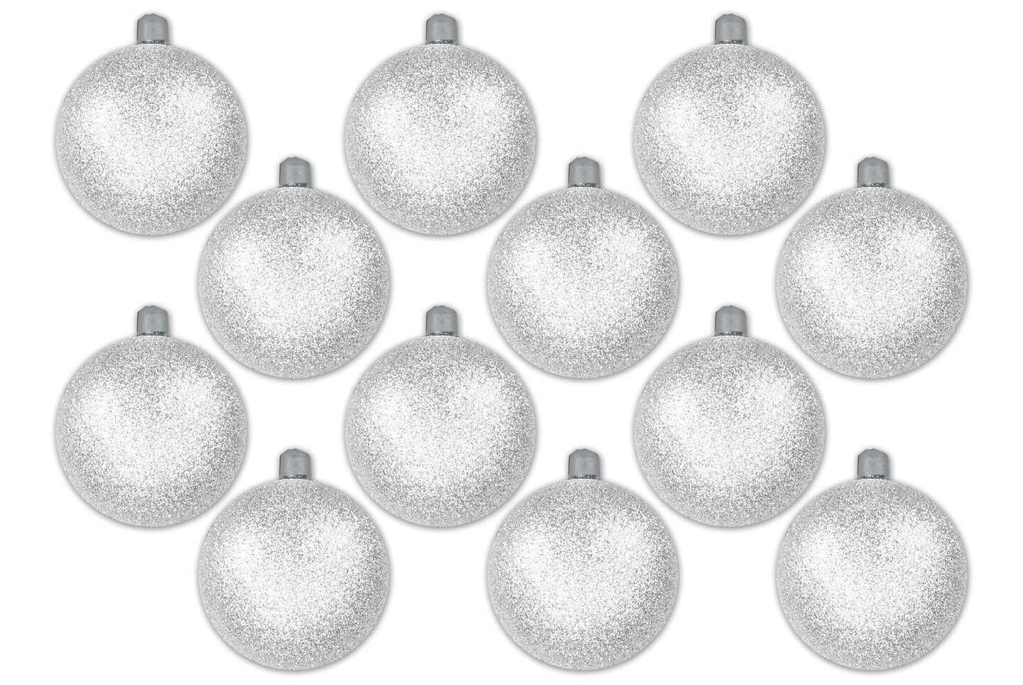 12 Pack 100mm 4" White Glitter Ball Ornament with Wire