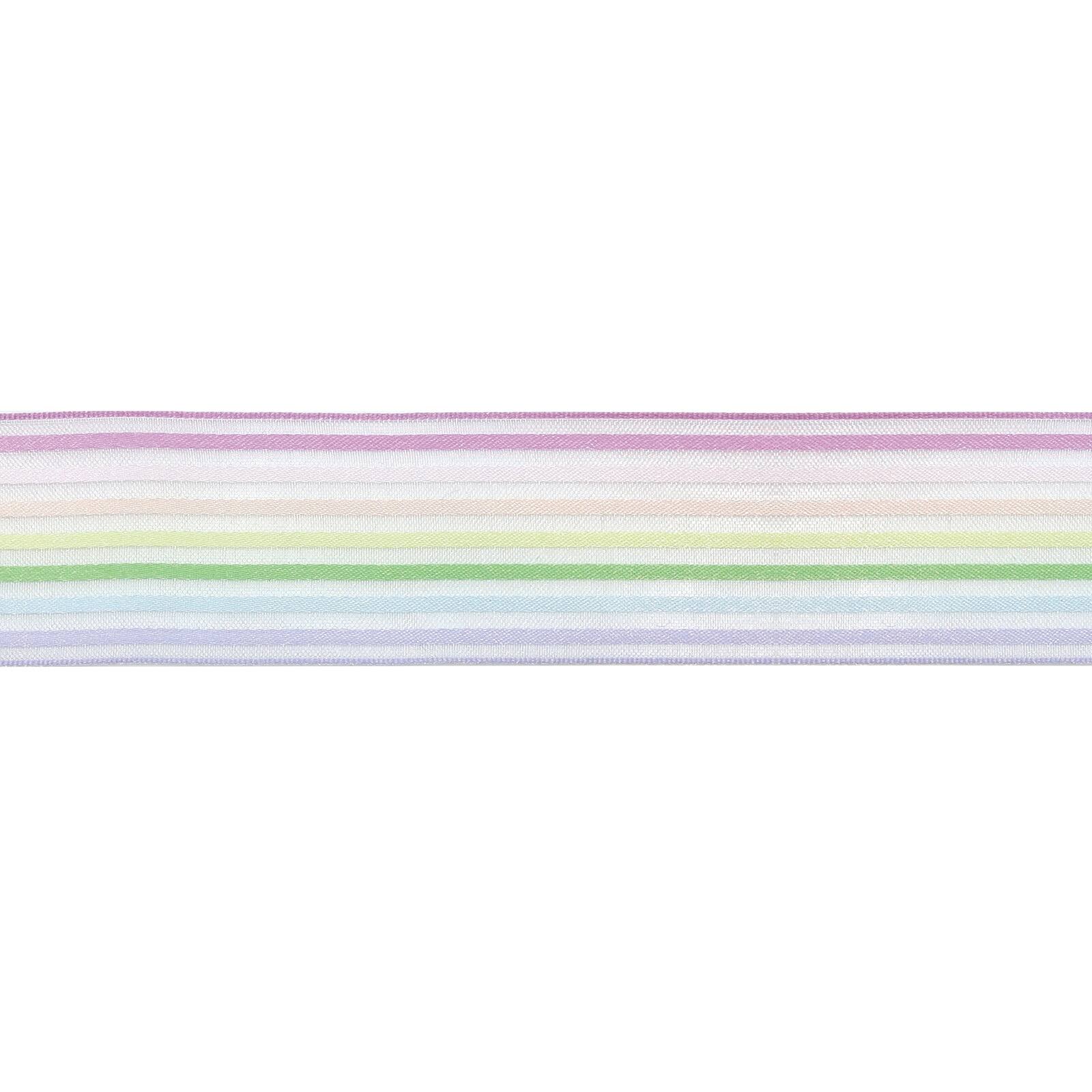 12 Pack: 1.5" x 3yd. Sheer Wired Pastel Rainbow Striped Ribbon by Celebrate It™ 360°™