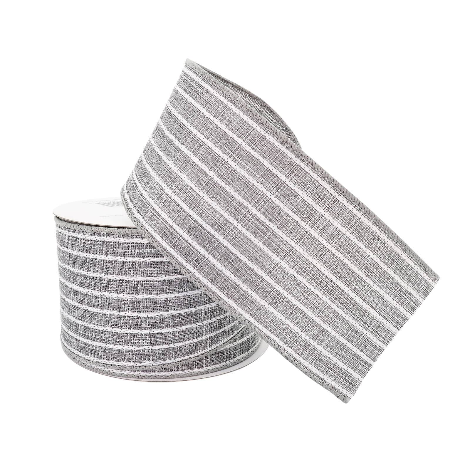 12 Pack: 2.5" x 25ft. Faux Linen Wired Pinstripe Ribbon by Celebrate It™ Décor