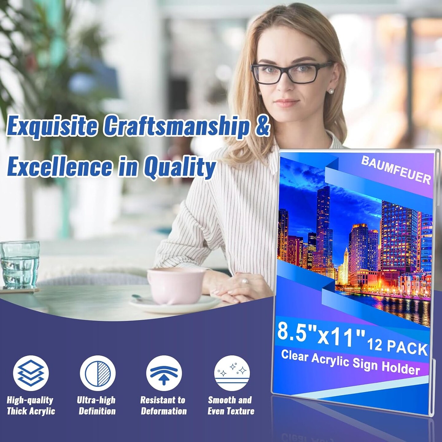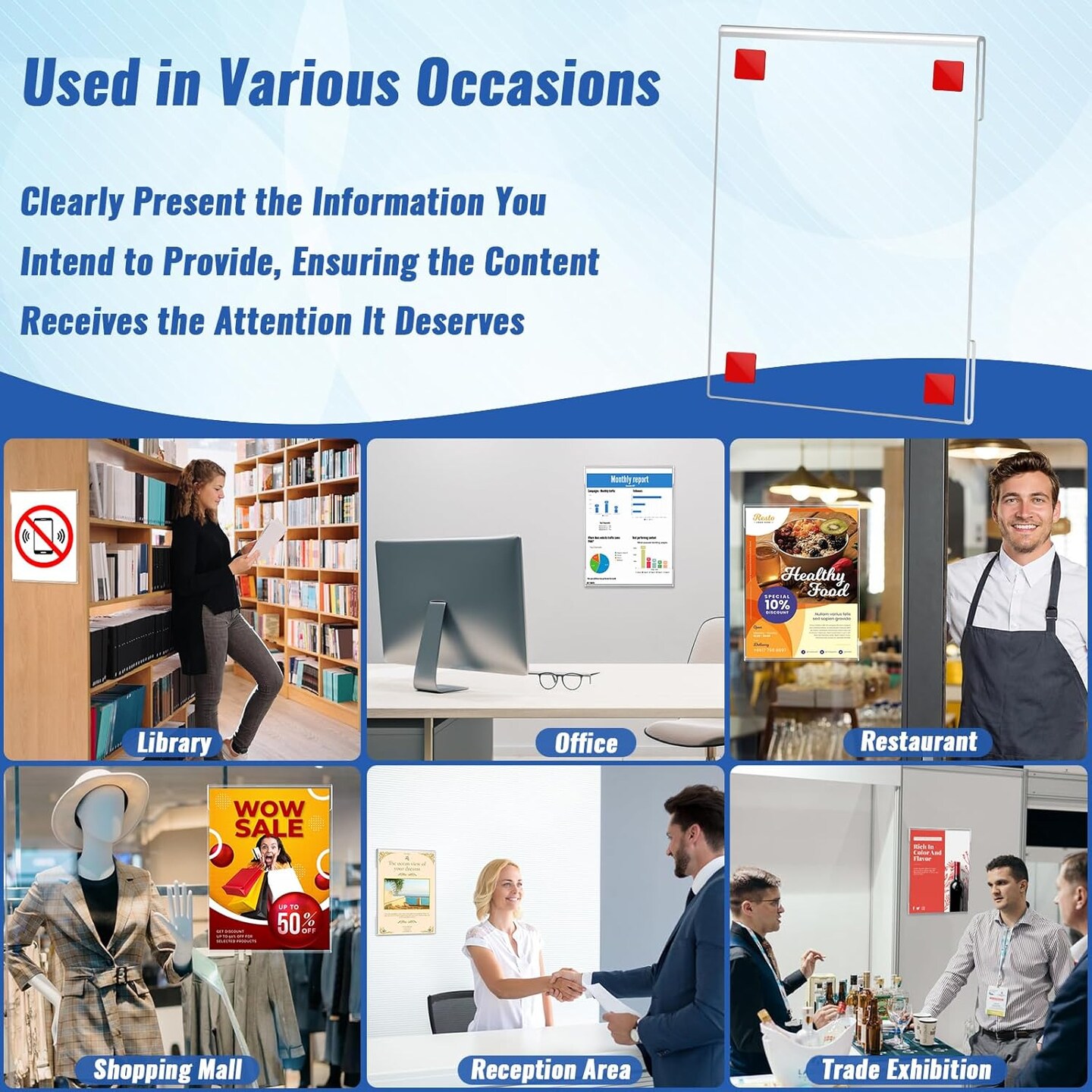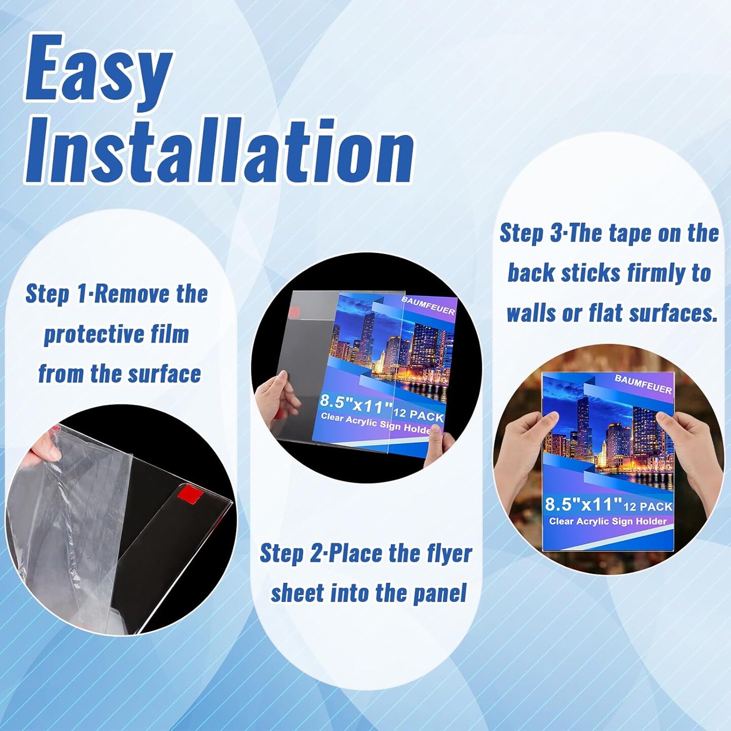 12 Pack Acrylic Sign Holder 8.5 x 11, Clear Plastic Wall Sign Holder with Adhesive Tape Wall Mount Display Stand Paper Holder for Menu, Office, Home, Store, Restaurant No Drilling Needed