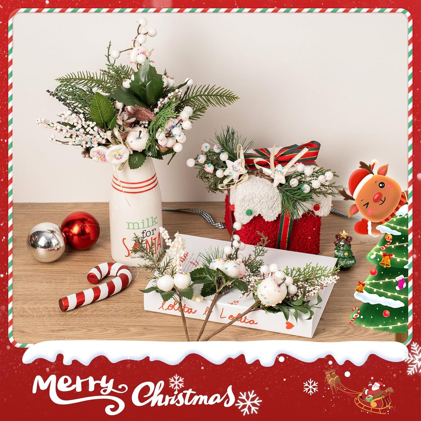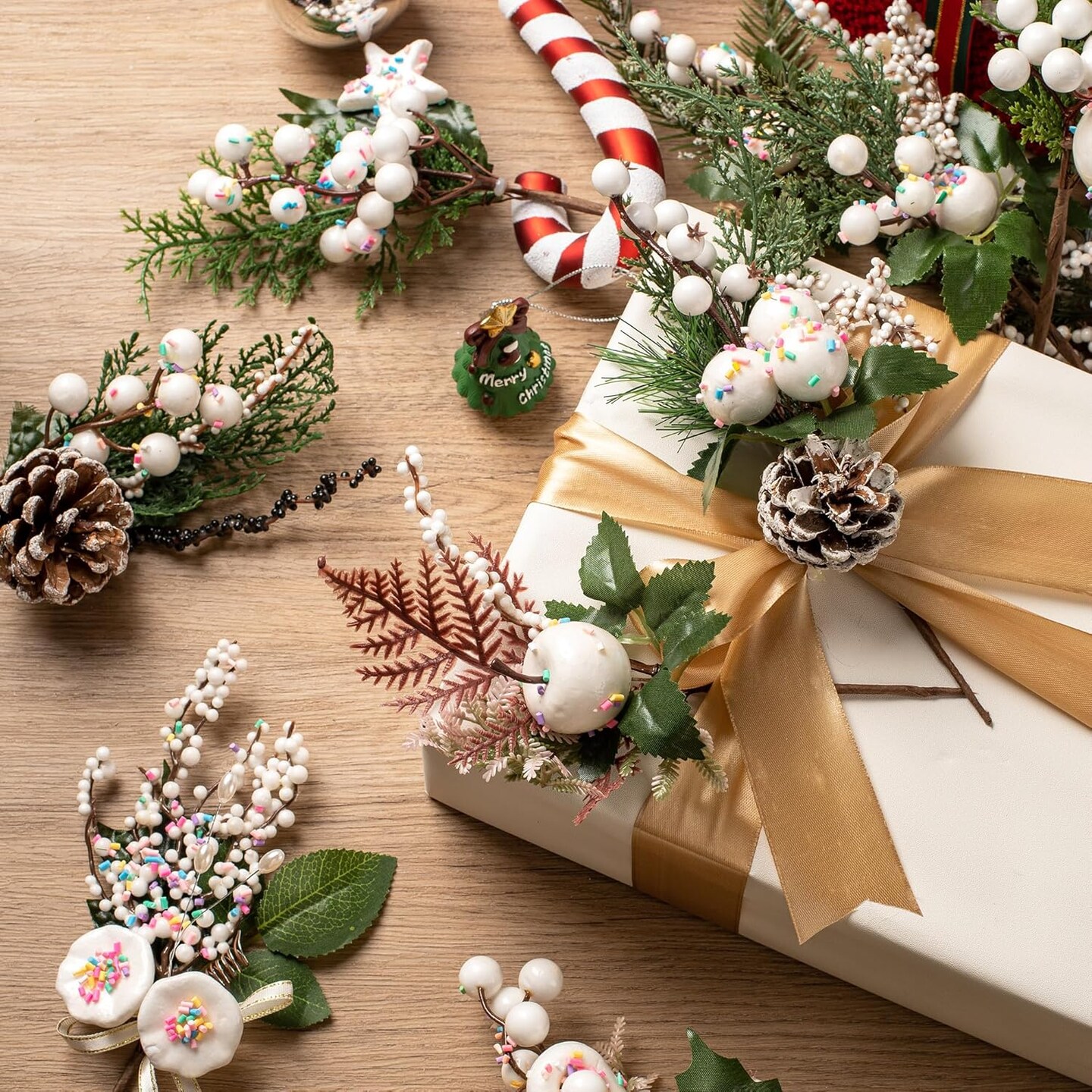 12 Pack Artificial Christmas Tree Picks (White)