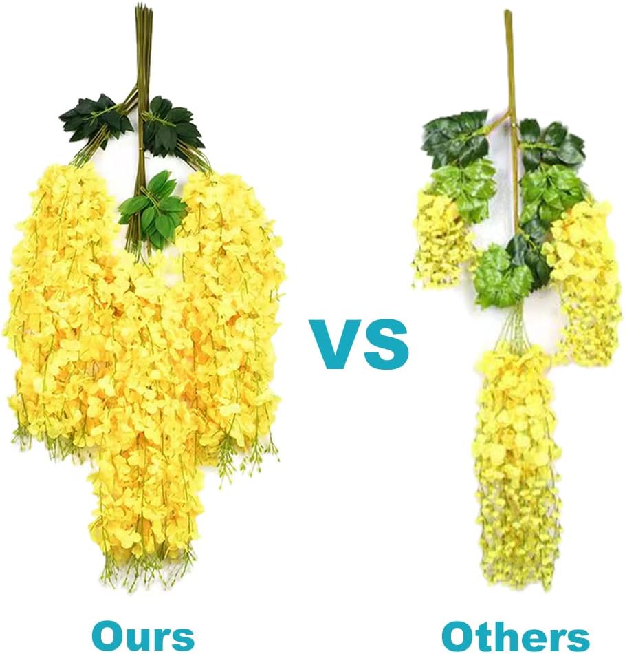 12 Pack Artificial Wisteria Flower Vines Garland, 3.75 Ft Flower Strings (Yellow)