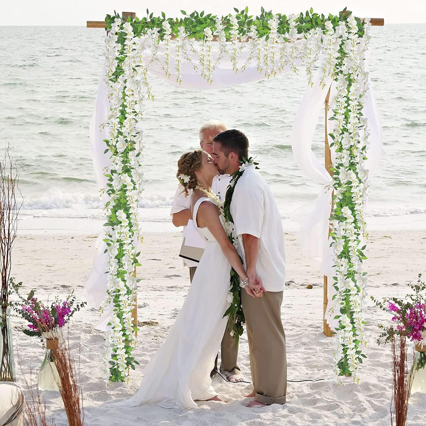 12 Pack Artificial Wisteria Vine Hanging Flower Garland (12, White)