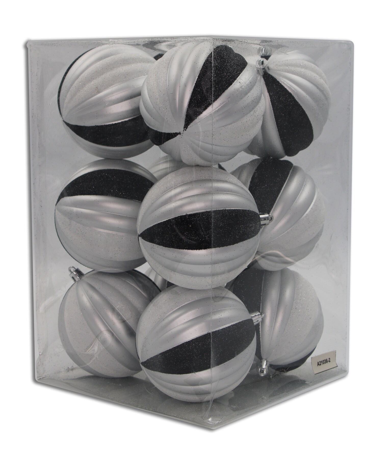 12 Pack Black, White and Silver Assorted Ball Ornaments