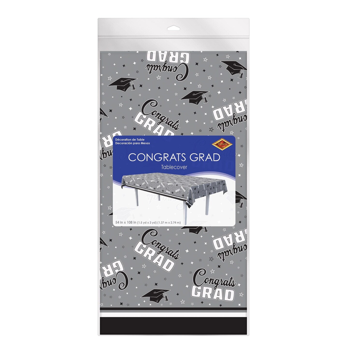12 Pack Bulk Congrats Grad Black Plastic Tablecover 54 inch x 108 inch
