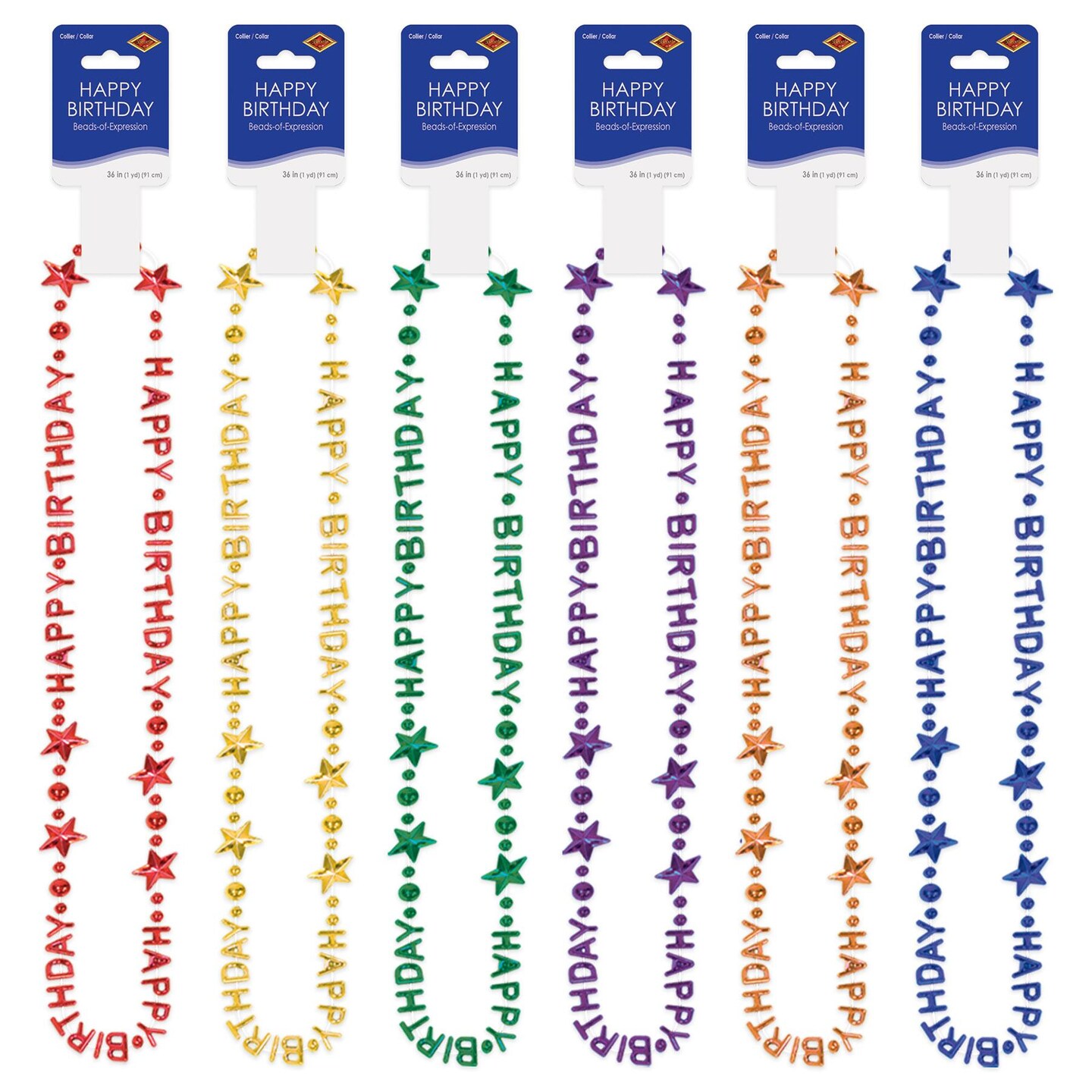 12 Pack Bulk Happy Birthday Bead Necklaces