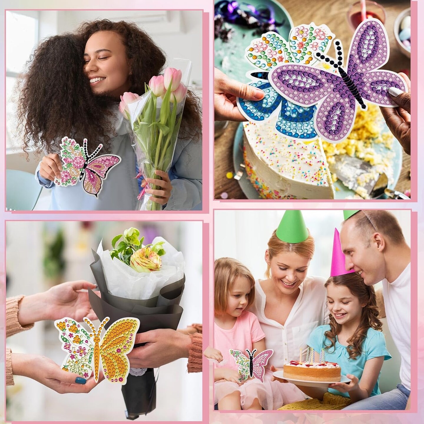 12 Pack Butterfly Diamond Painting Greeting Card Kits Spring Diamond Art Cards with Envelopes Flower Butterflies Shaped 5D Rhinestones Painting Kit for Adults DIY Crafts Friend Birthday Gifts