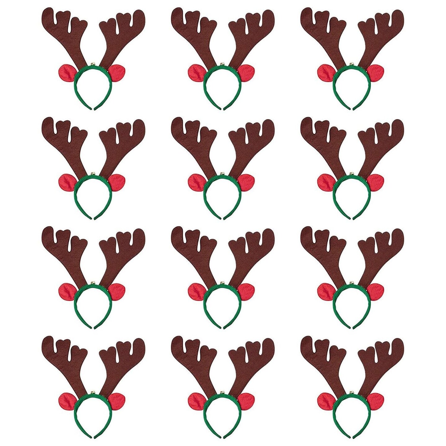 12 Pack Christmas Reindeer Antlers Headband, Holiday Photo Booth Props for Adults and Kids