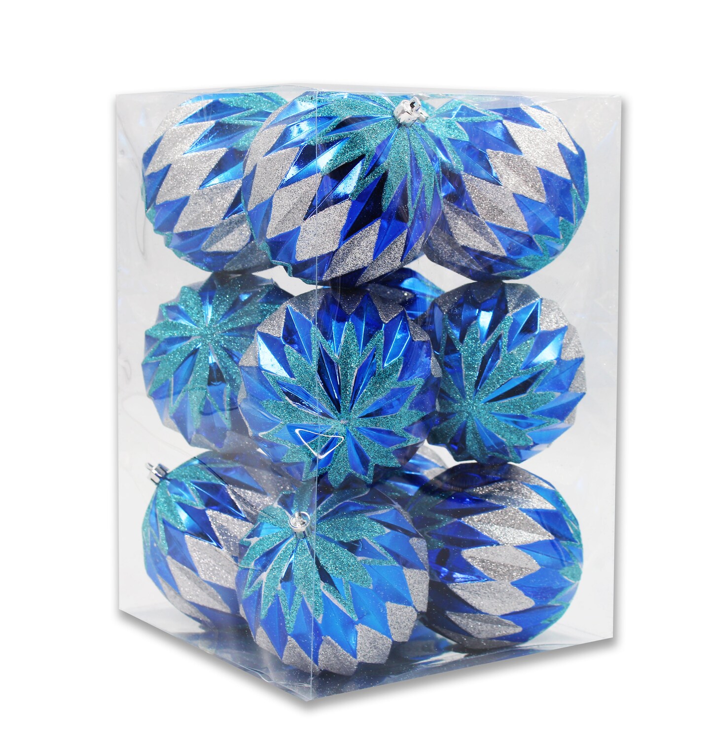 12 Pack Dark Blue, Aqua, Silver Assorted Ball Ornaments