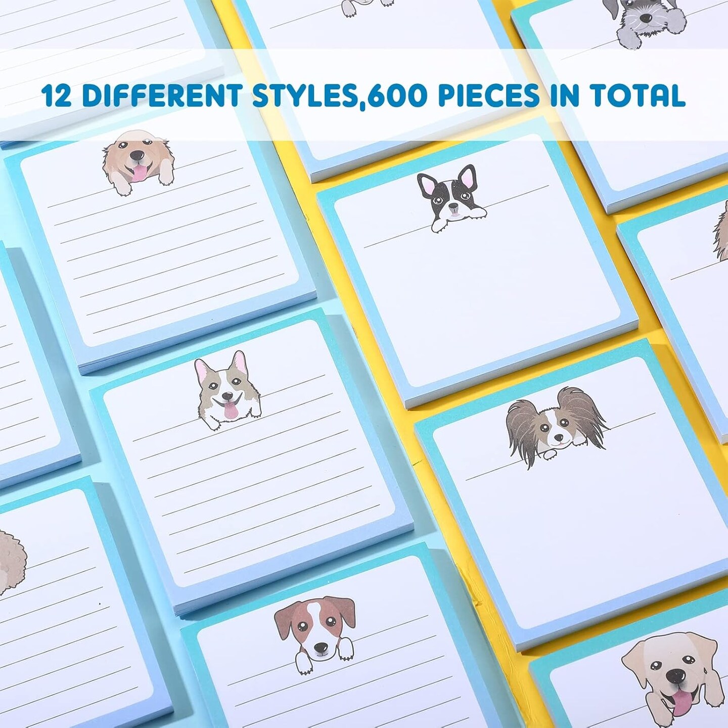 12 Pack Dog Flamingo Sticky Notes Bulk Small to Do List Funny Cute Animals Notepad for Office School Gifts, 600 Sheets in Total(Green,Cute Dog)