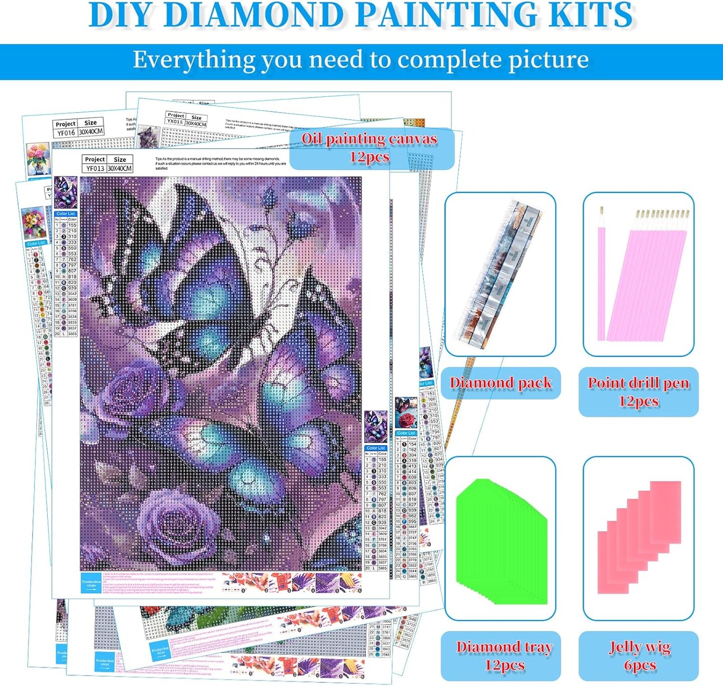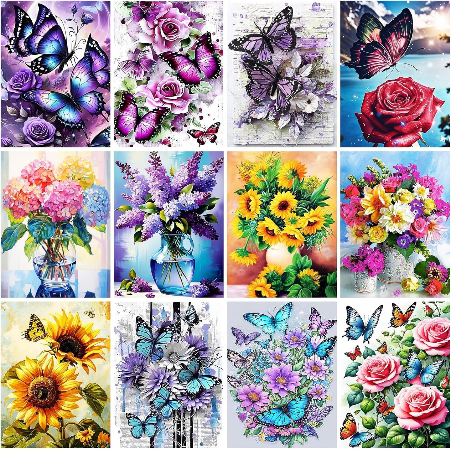 12 Pack Flowers Diamond Art Kits(Flower Diamond Painting)