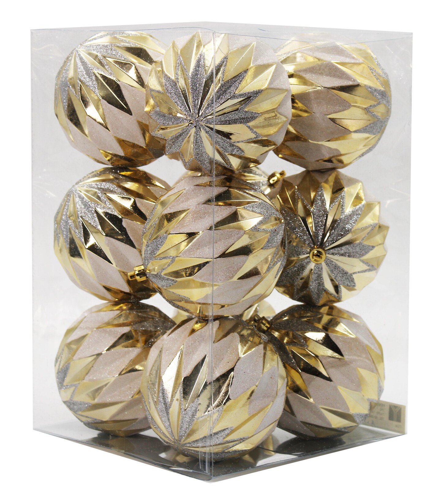 12 Pack Gold, Silver, White Assorted Ball Ornaments