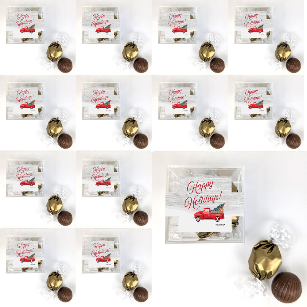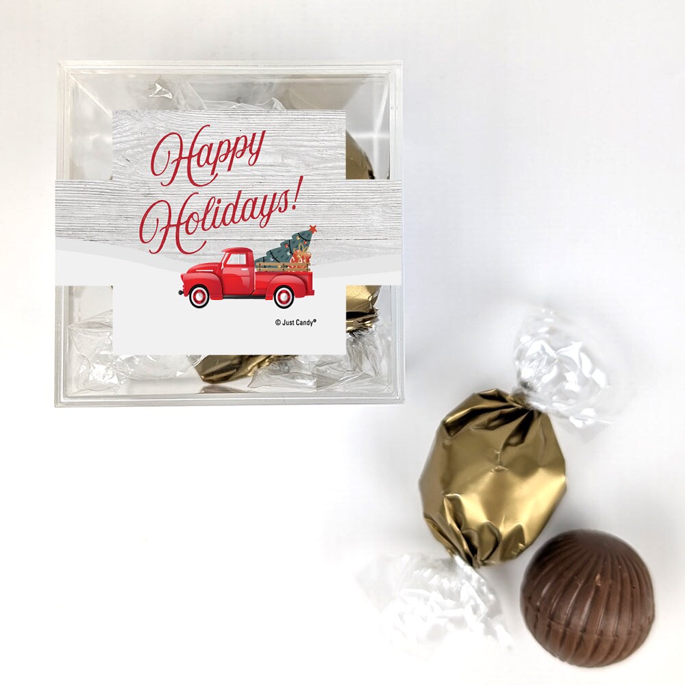 12 Pack Happy Holidays Candy Favor Cube Filled With Milk Chocolate Dubai Truffles For Gifting, Christmas Party Favors, Giveaways, Candy Buffets & More - Red Truck