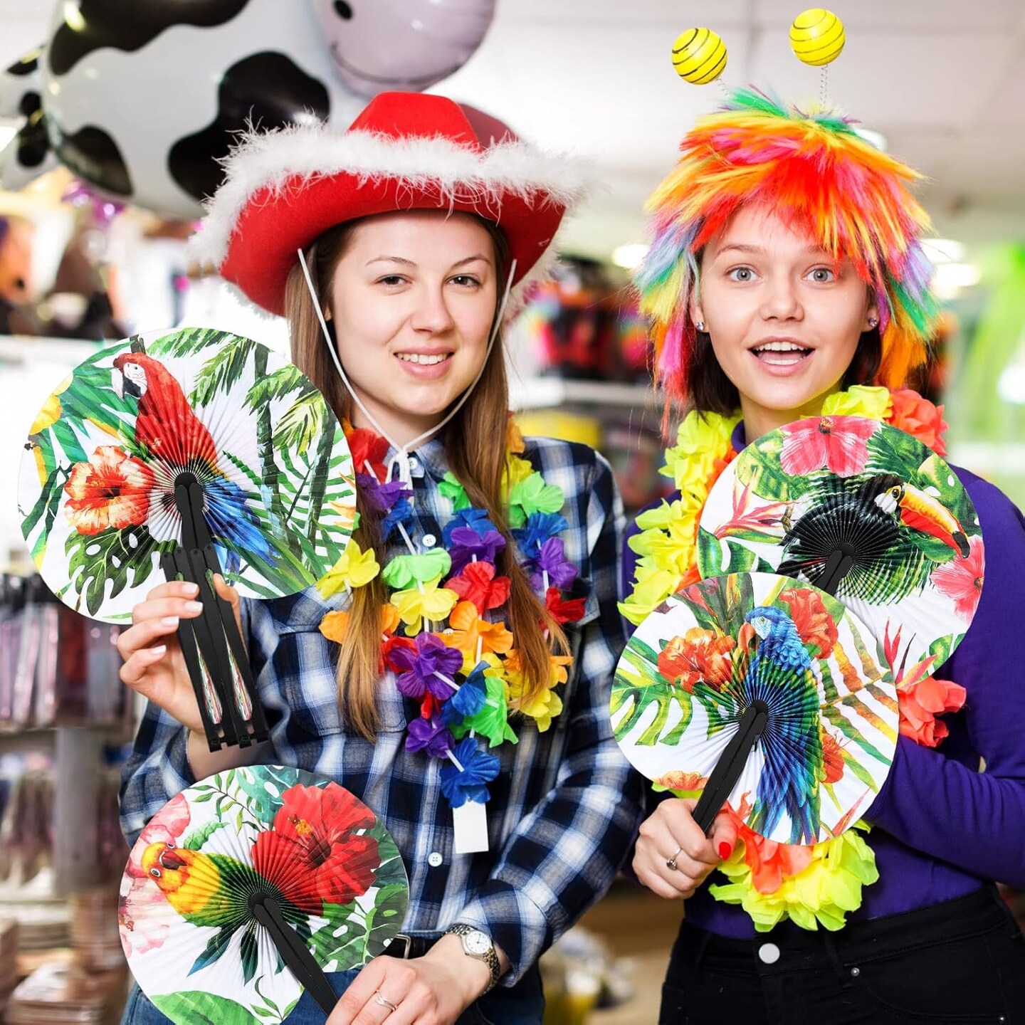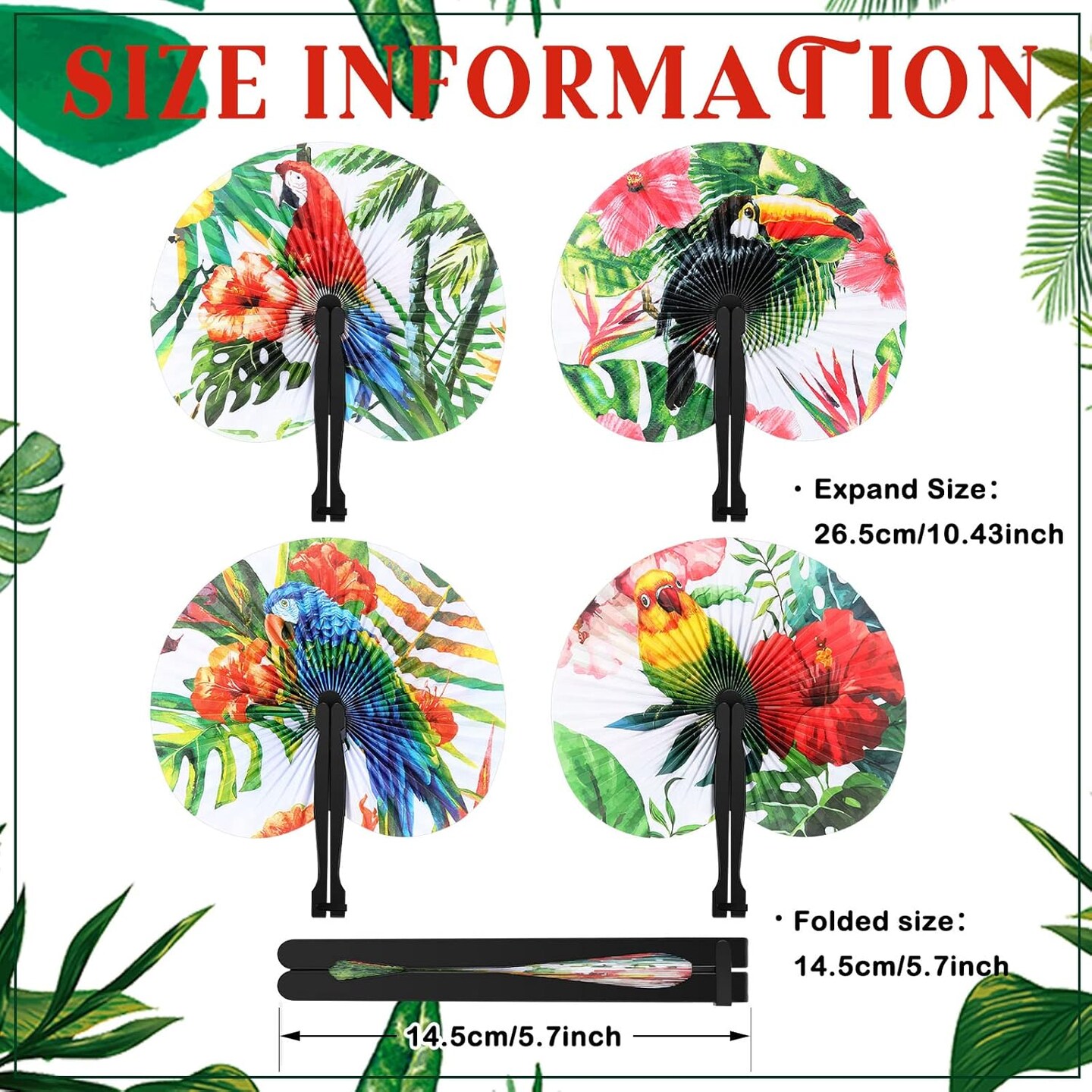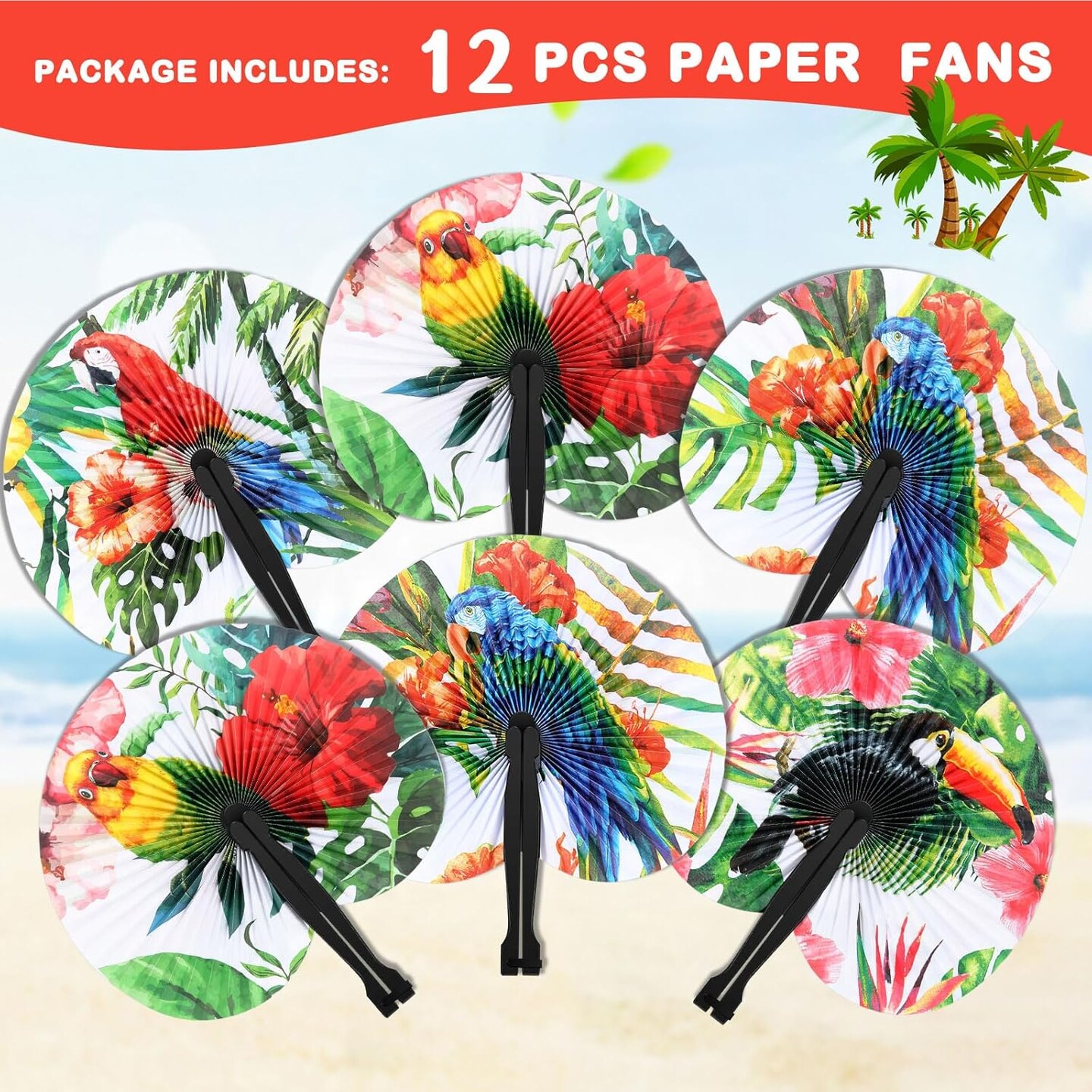 12 Pack Hawaiian Parrot Paper Hand Fans Decorative Folding Handheld Fans Birthday Party Supplies
