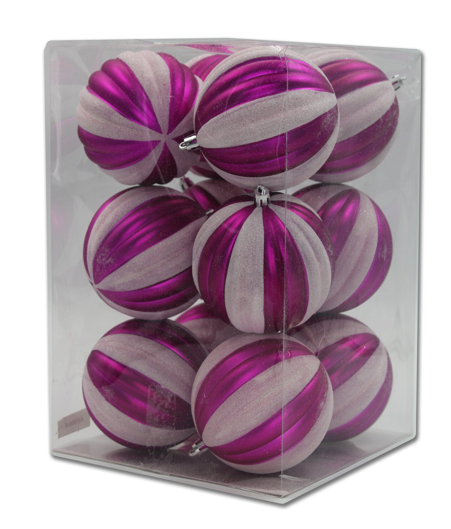 12 Pack Hot Pink and White Assorted Ball Ornaments