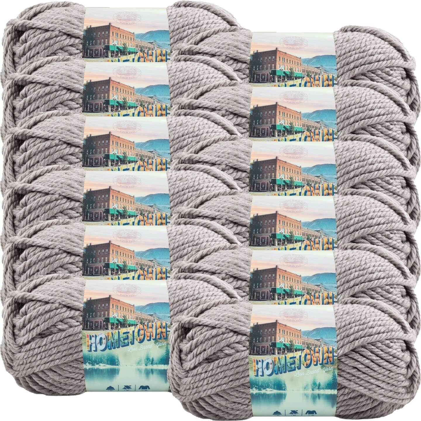 (12 Pack) Lion Brand Yarn Hometown Yarn, Dallas Grey