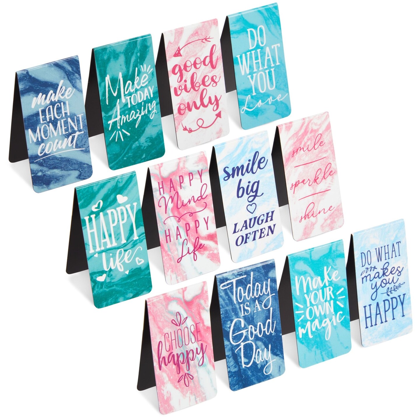 12 Pack Magnetic Bookmarks for Women - Inspirational Book Markers for Reading, Book Accessories (Marble)